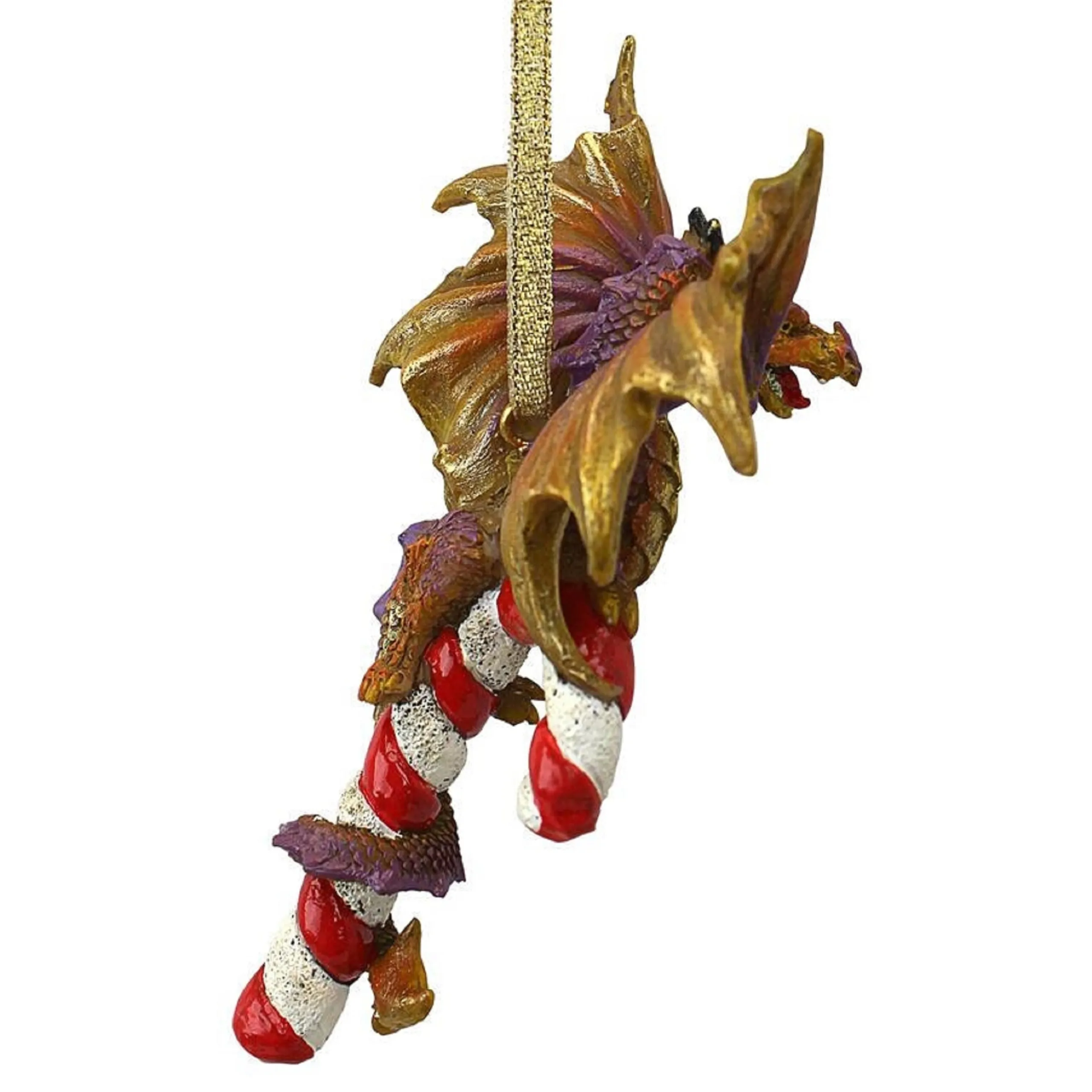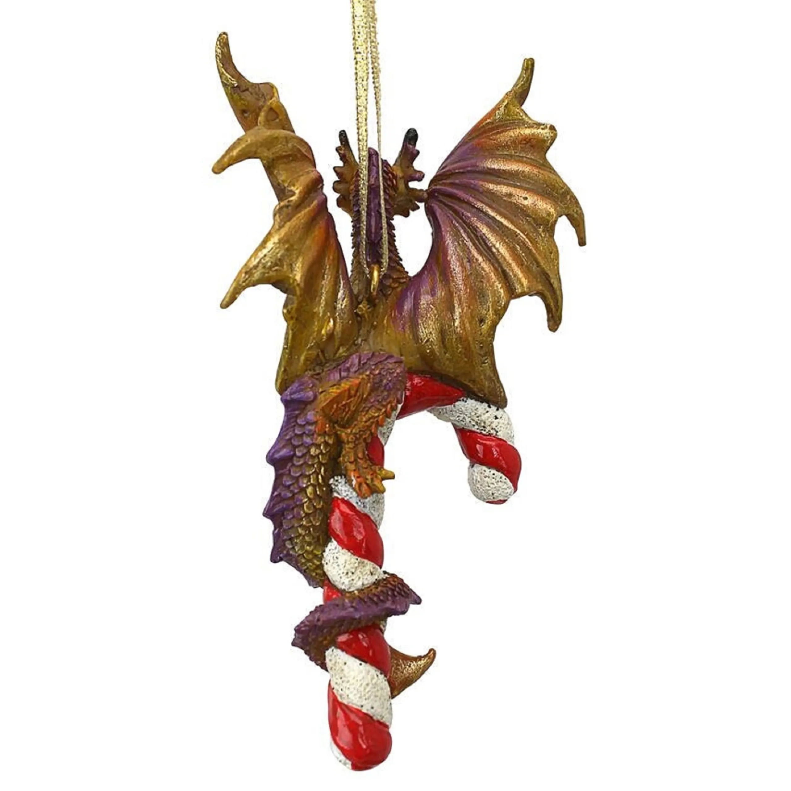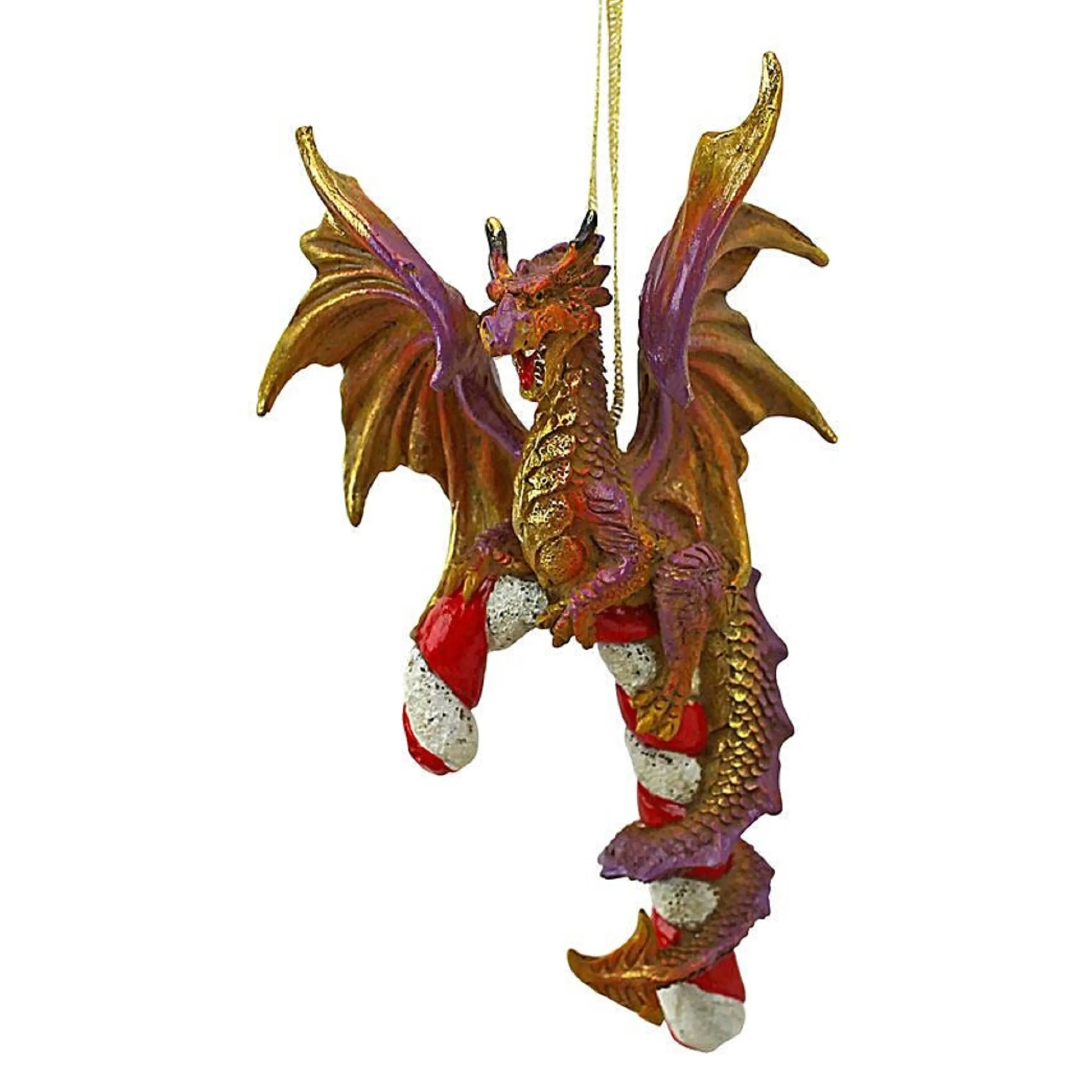 Outdoor Living and Style Fantasy & Sci Fi>5″ Dragon Hanging On A Candy Cane Holiday Ornament