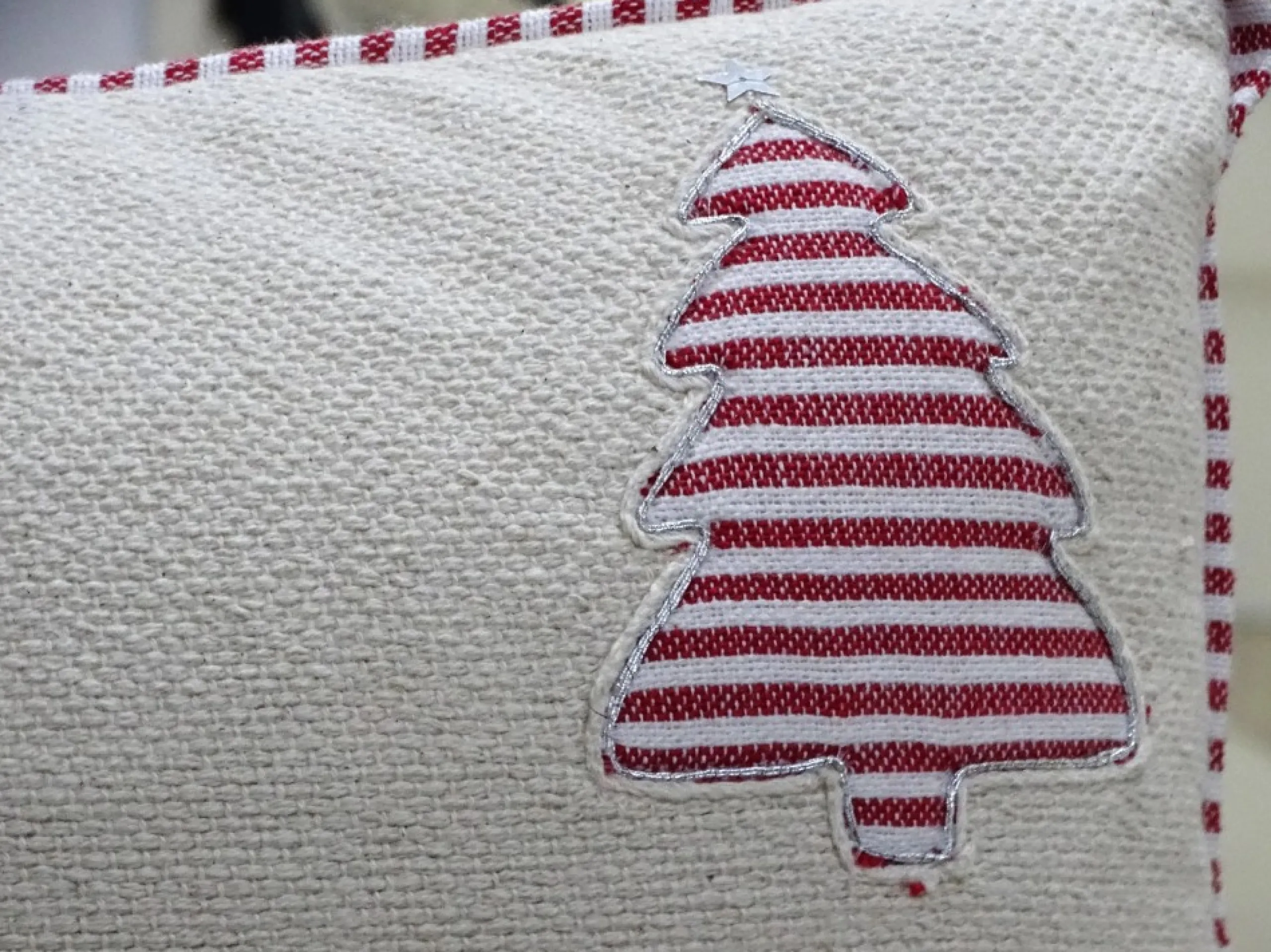 Handloomed Woven Christmas Tree Throw Pillow In White And Red