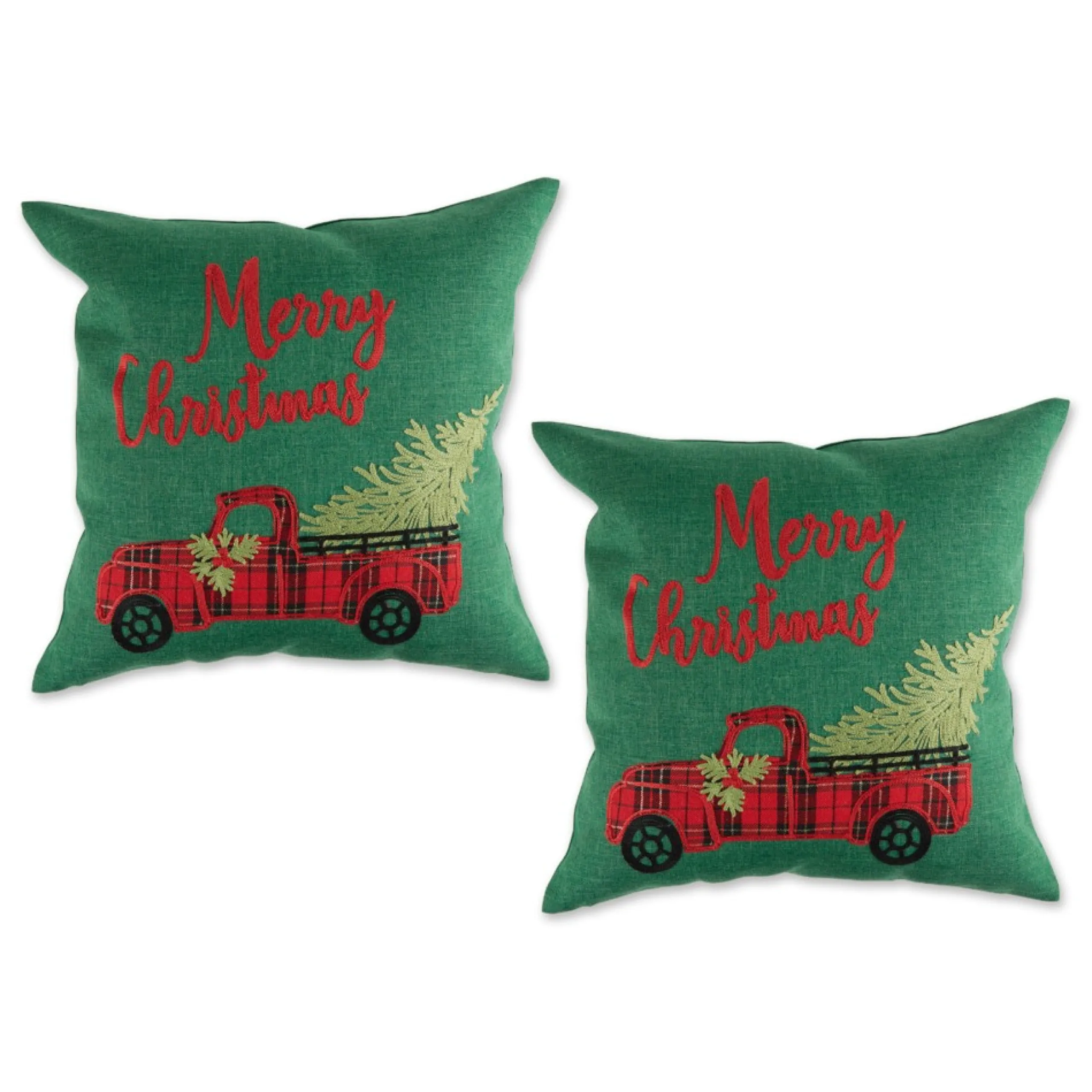 Pillows & Throws*Contemporary Home Living Set Of 2 Red And Green Merry Christmas Truck Square Throw Pillow Covers 18″