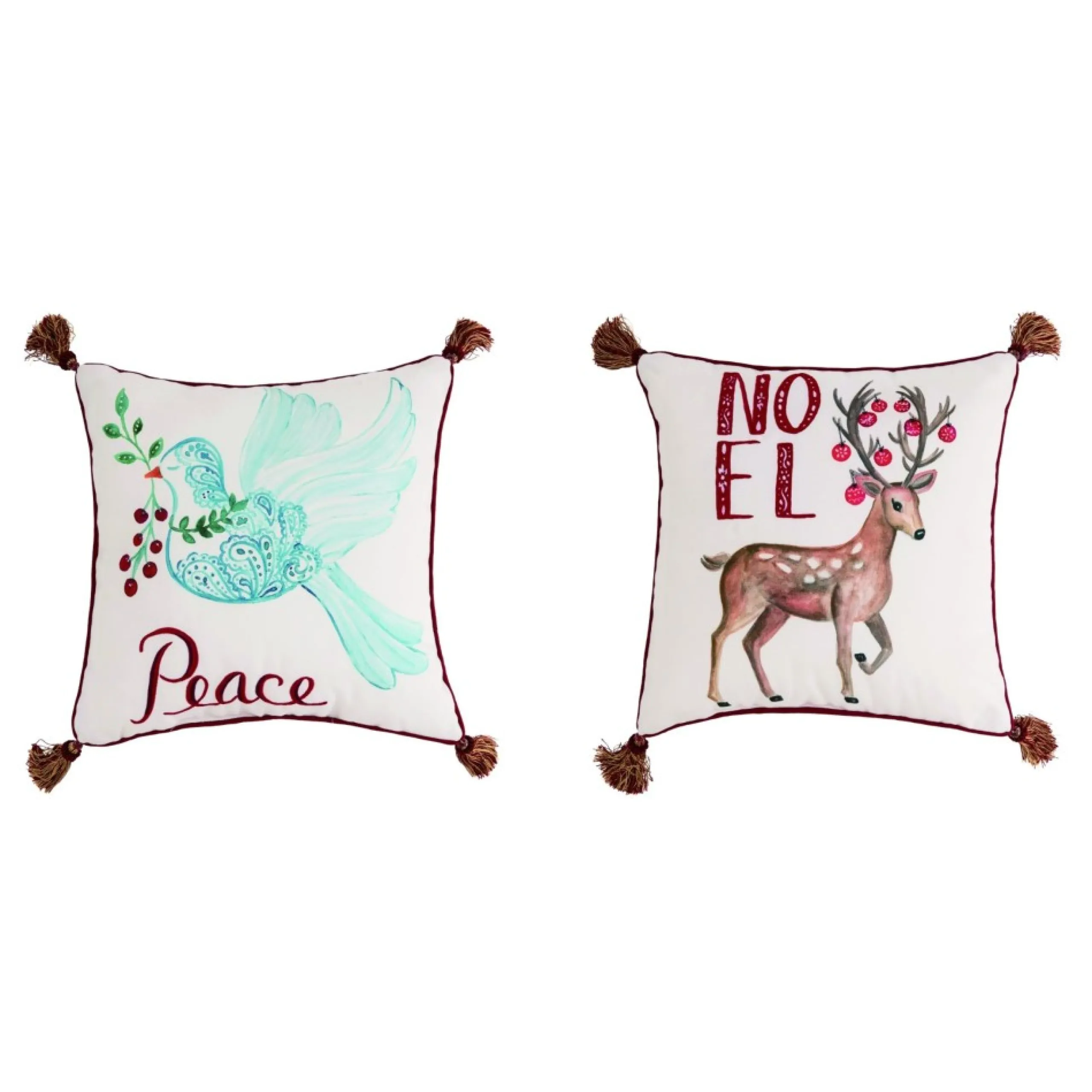 Pillows & Throws*Contemporary Home Living Set Of 2 White Dove And Deer Square Christmas Throw Pillows 16″
