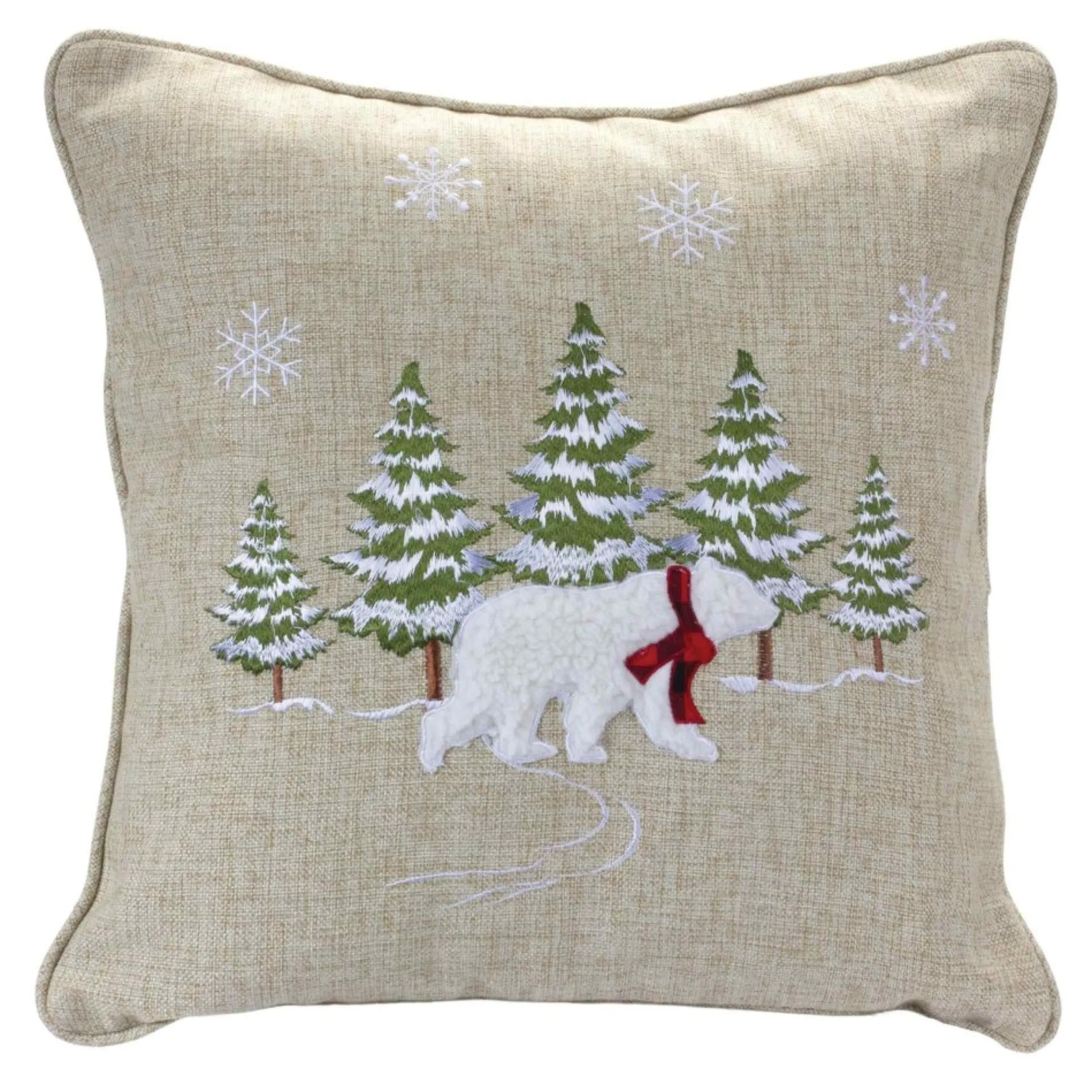 Pillows & Throws*Melrose 17″ Beige And White Polar Bear Forest Embroidered Christmas Throw Pillow