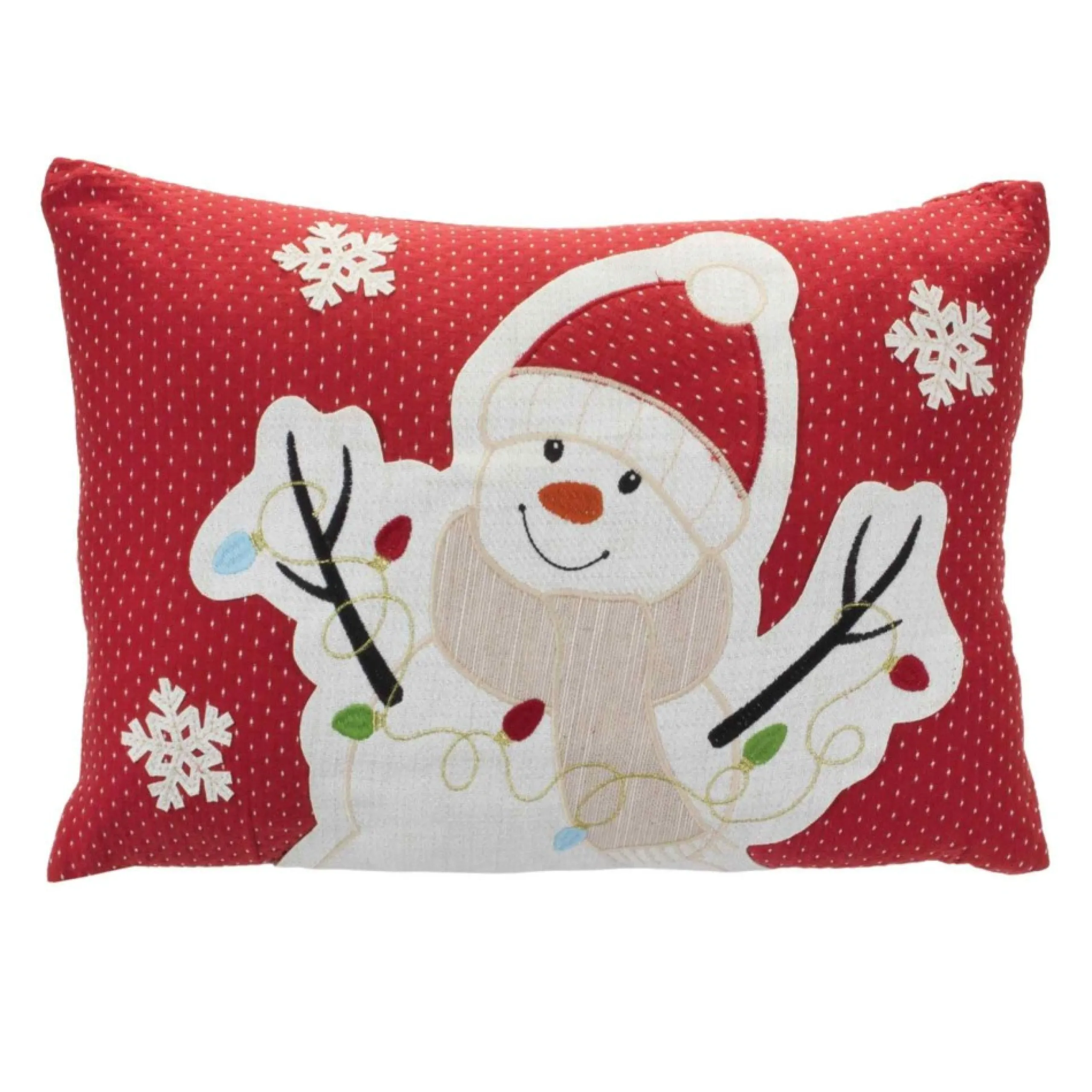 Pillows & Throws*Melrose 17″ Red And White Embroidered Snowman Rectangular Christmas Throw Pillow