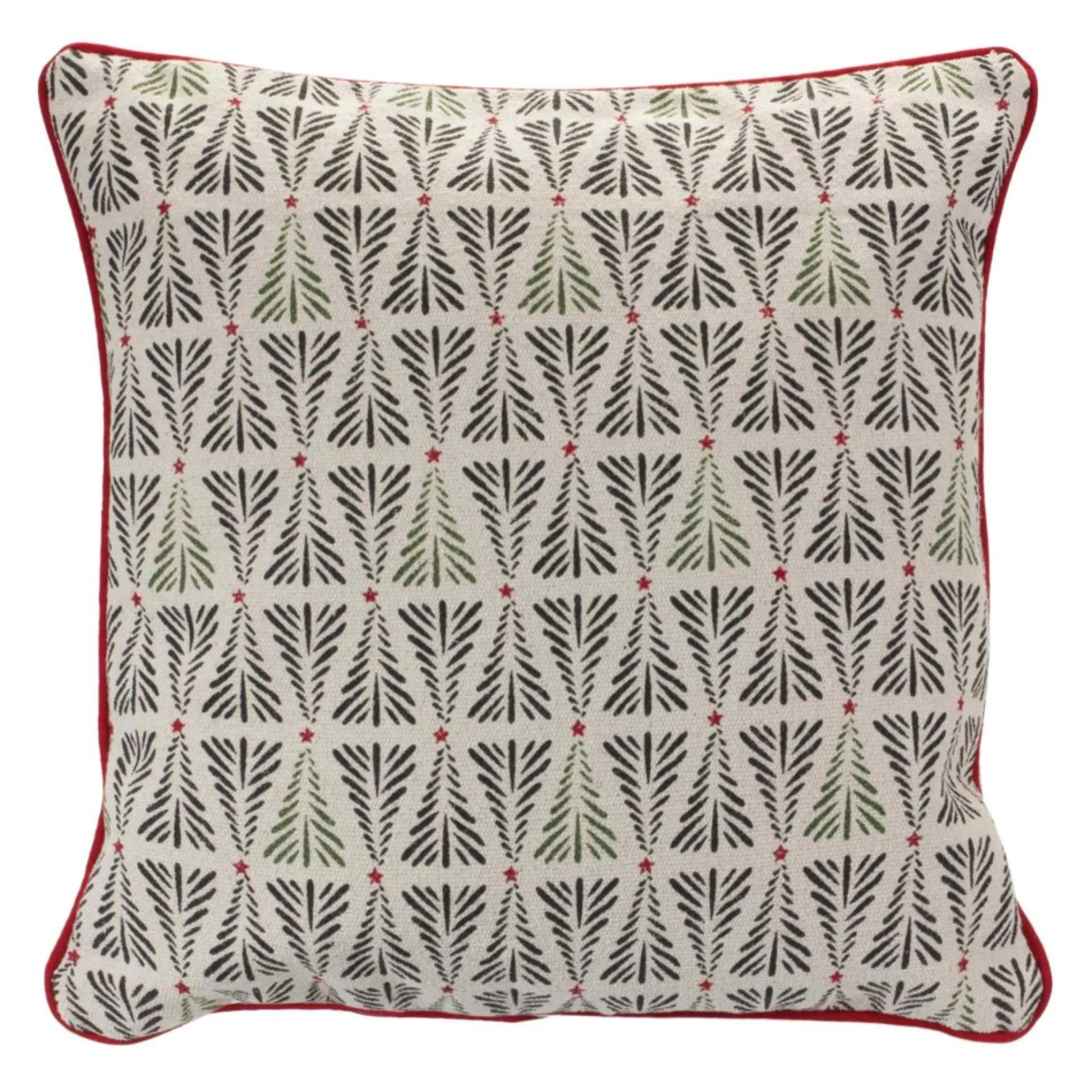 Pillows & Throws*Melrose 18″ Beige And Green Pine Tree Cotton Christmas Throw Pillow