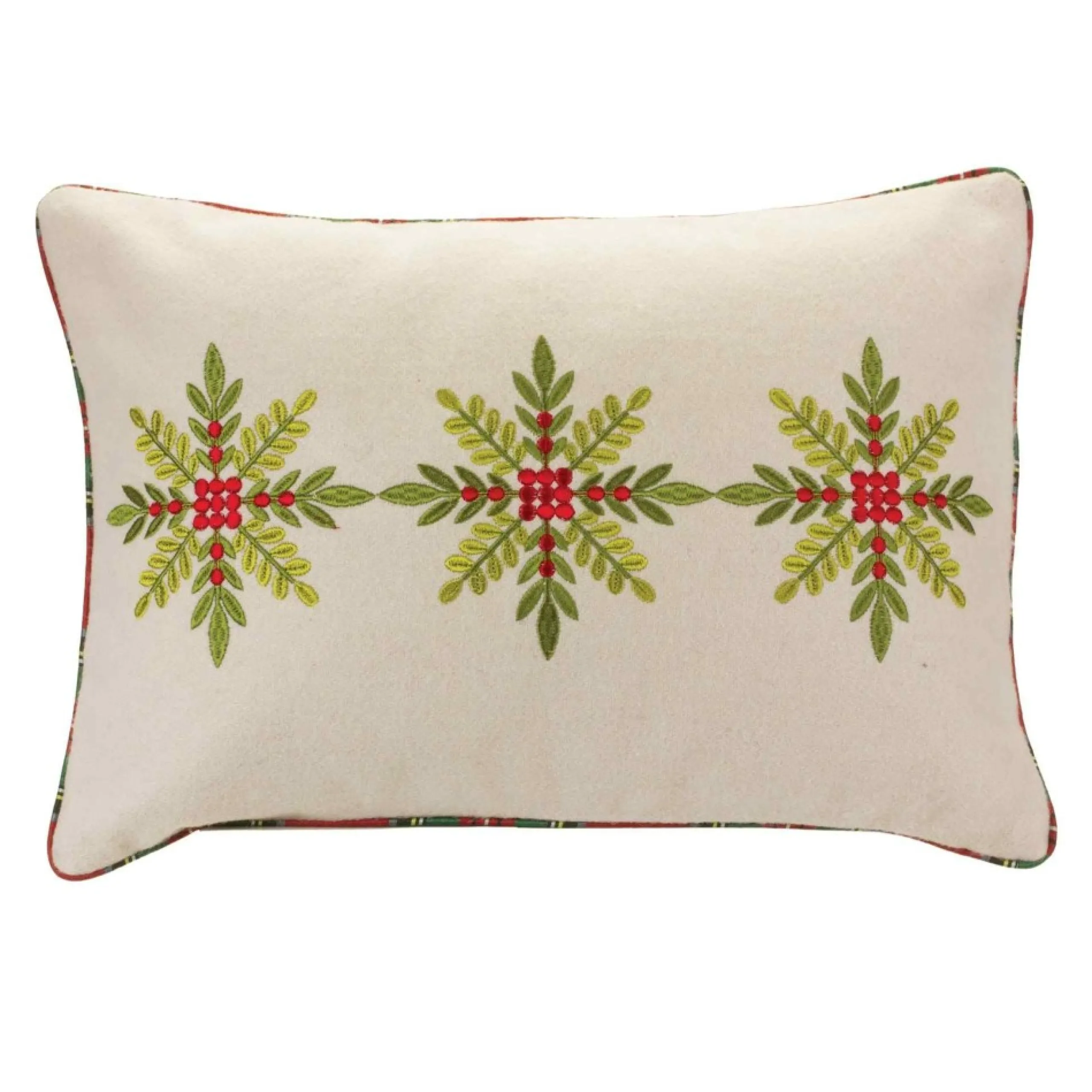 Pillows & Throws*Melrose 19.5″ Beige And Green Embroidered Snowflake Rectangular Christmas Throw Pillow