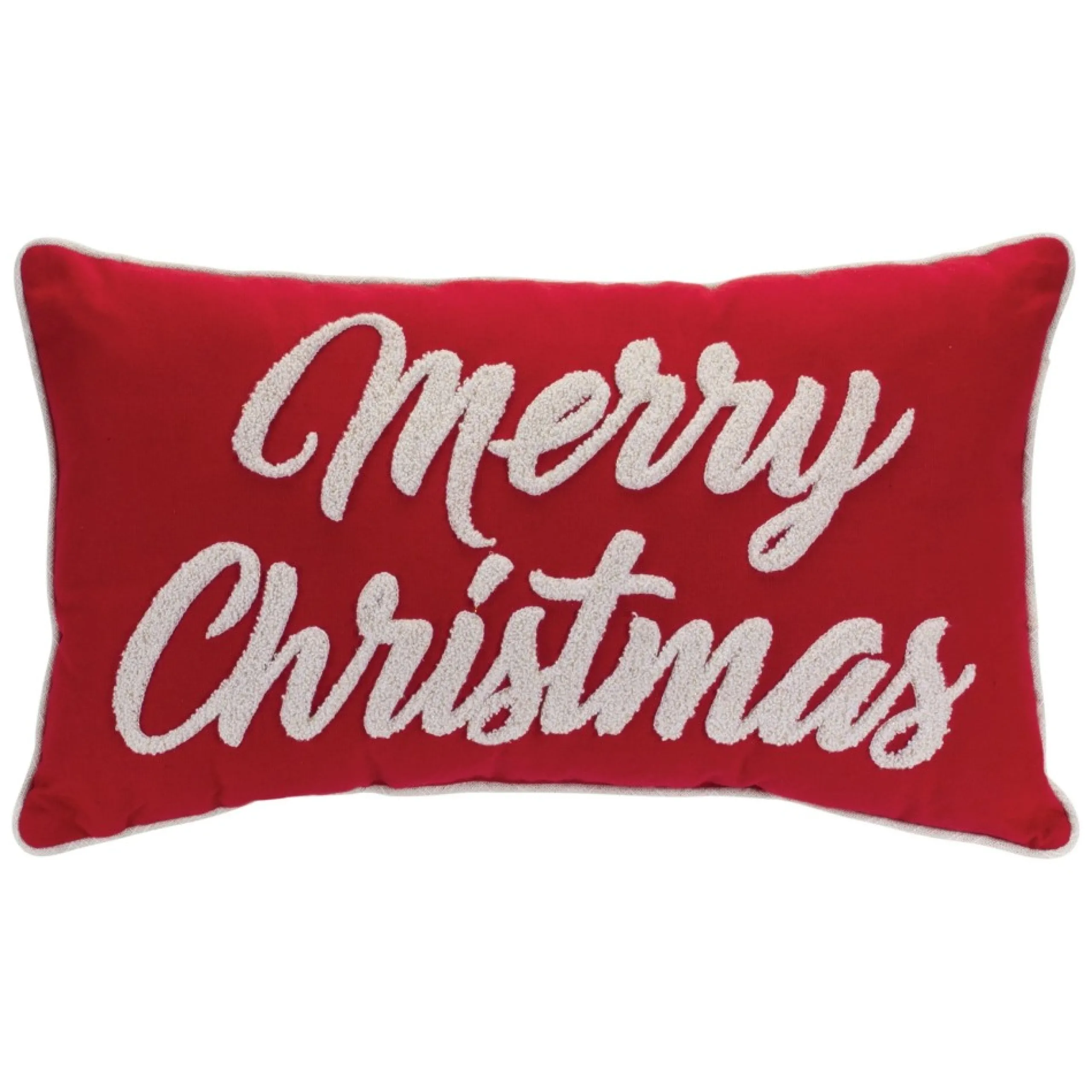 Pillows & Throws*Melrose 19″ Red And White “Merry Christmas” Rectangular Throw Pillow