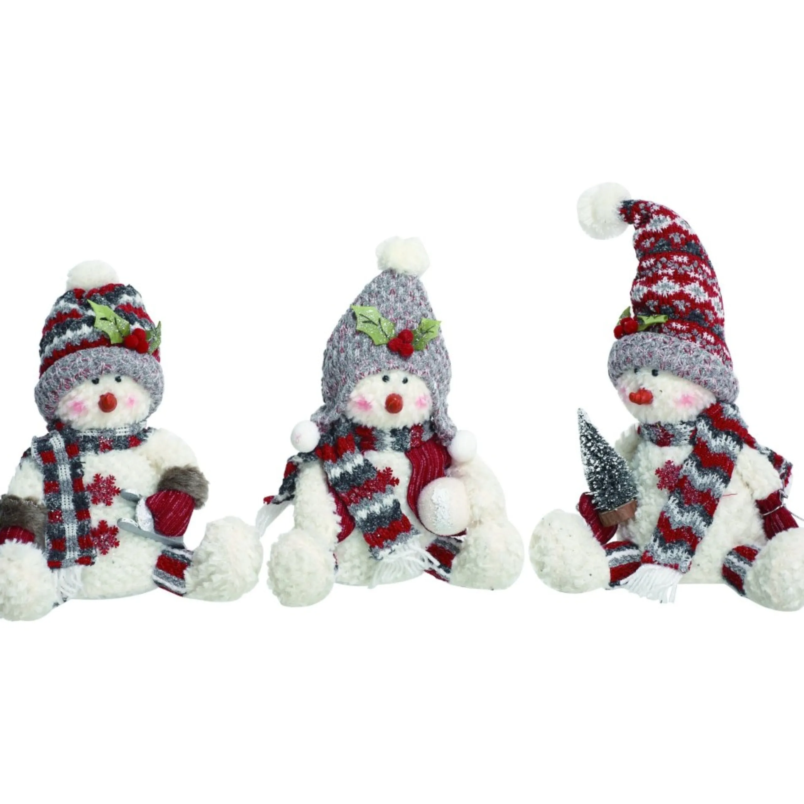 Plush Figures*Contemporary Home Living Set Of 3 Nordic Sitting Snowman Plush Christmas Figurines 14″