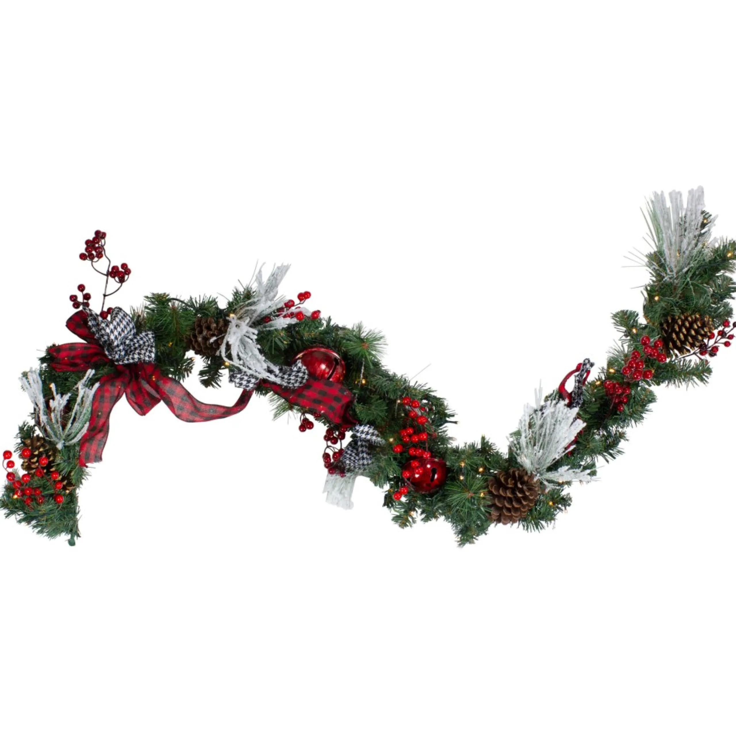 Pre-Lit Garland*Northlight 6′ X 12″ Pre-Lit Plaid Bows And Red Berries Artificial Christmas Garland – Warm White Lights
