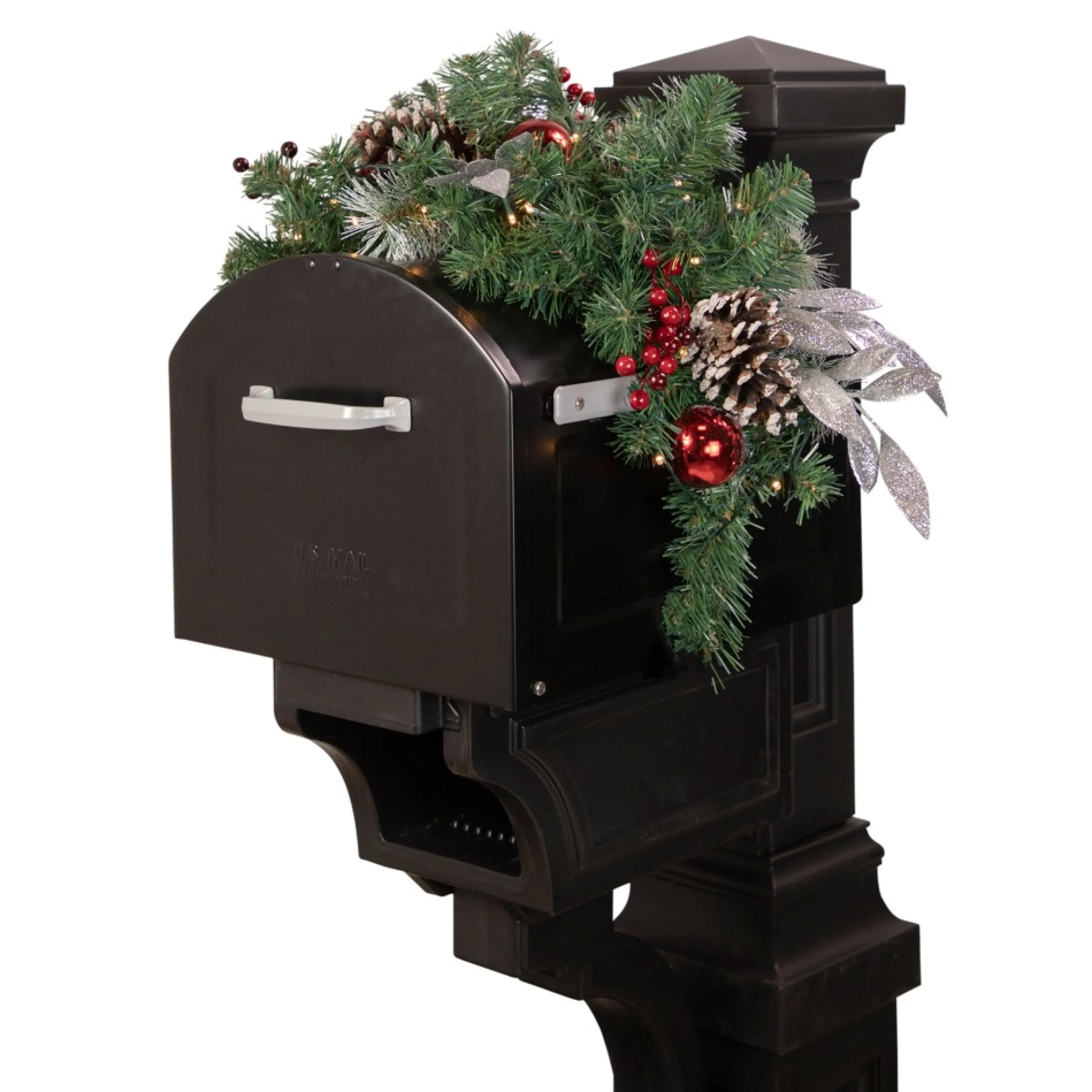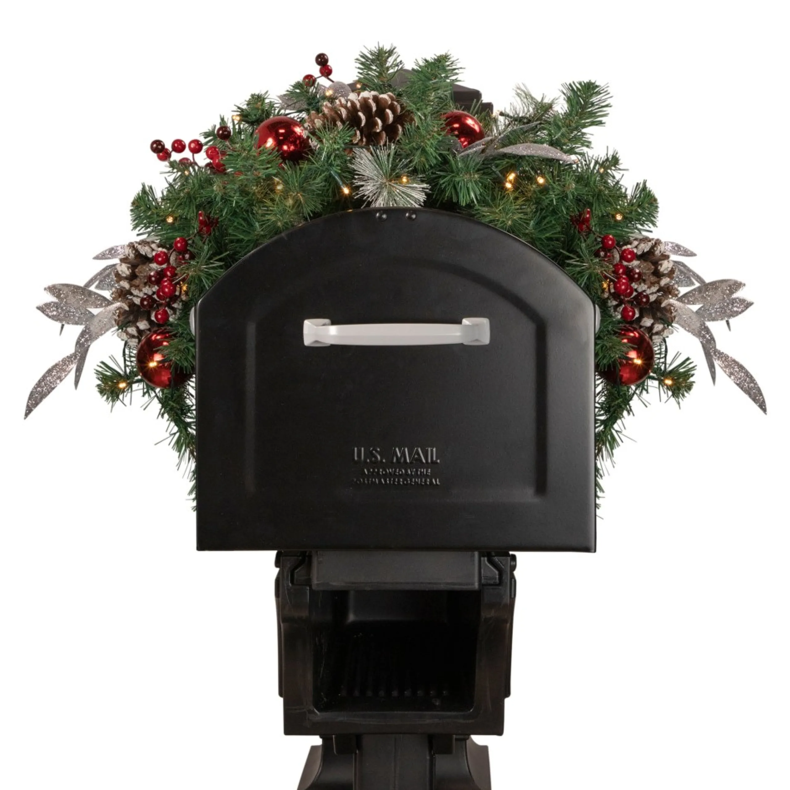 Lighted Pre-Decorated Artificial Pine Mailbox Swag