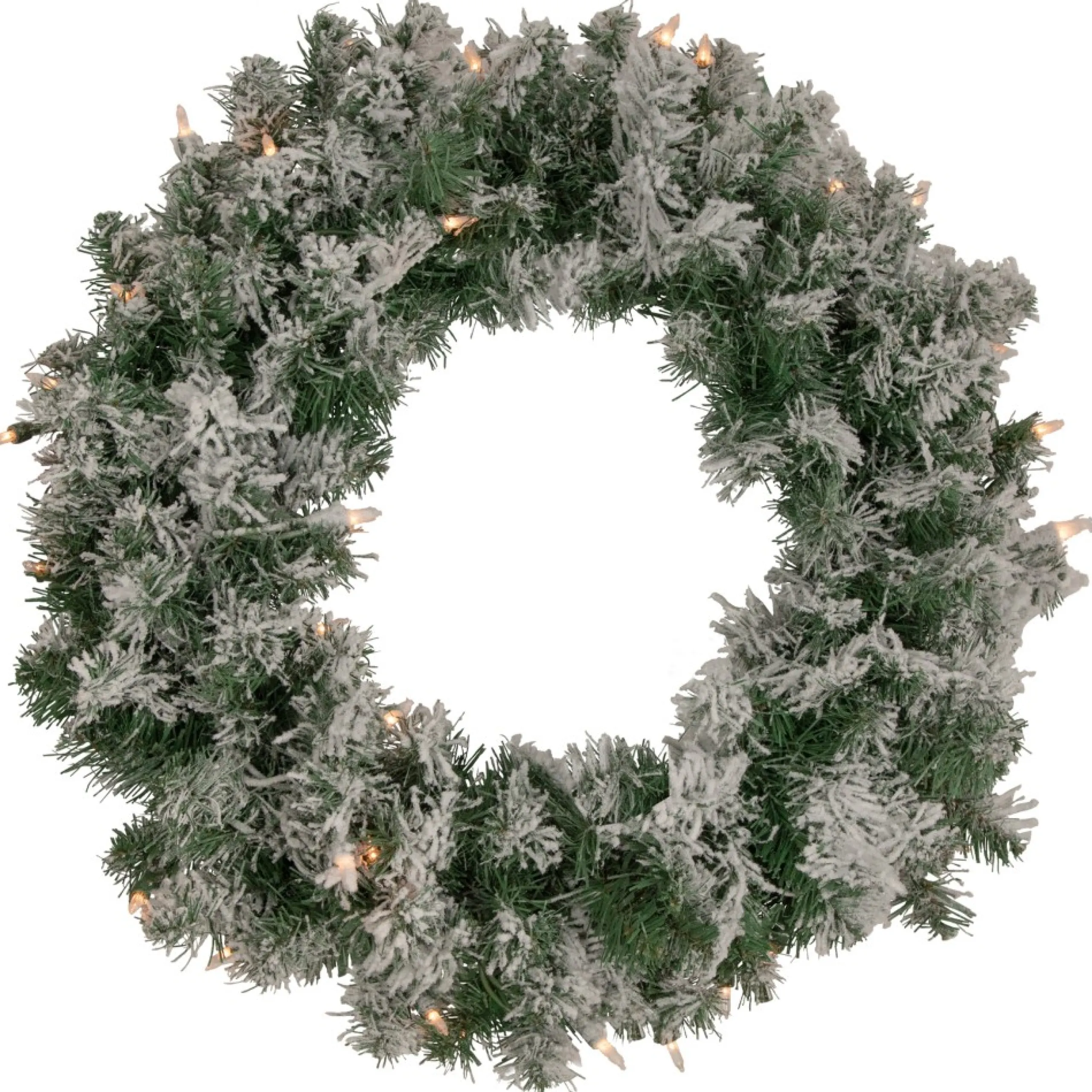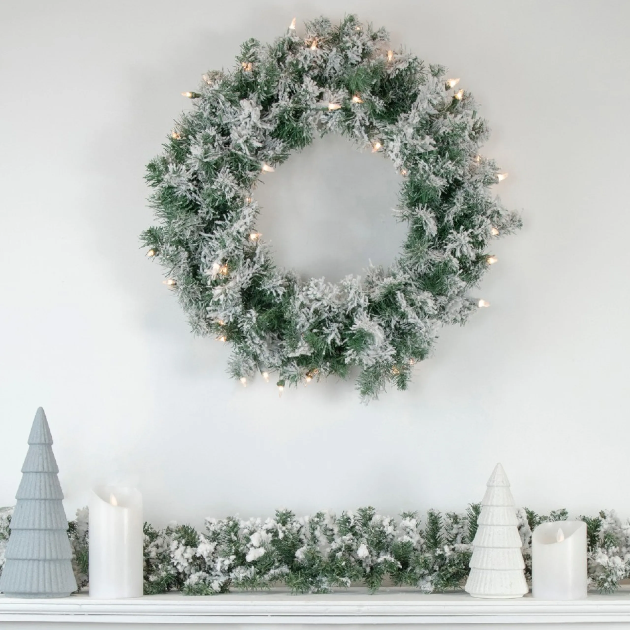 Pre-Lit Wreaths*Northlight Pre-Lit Flocked Victoria Pine Artificial Christmas Wreath – 24-Inch, Clear Lights