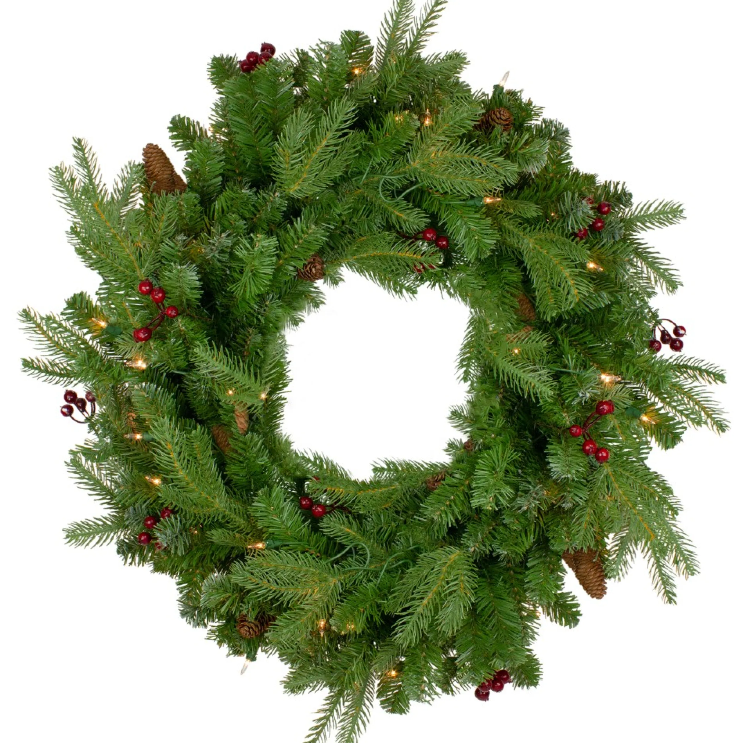 Pre-Lit Wreaths*Northlight Pre-Lit Mixed Winter Berry Pine Artificial Christmas Wreath – 24-Inch, Clear Lights