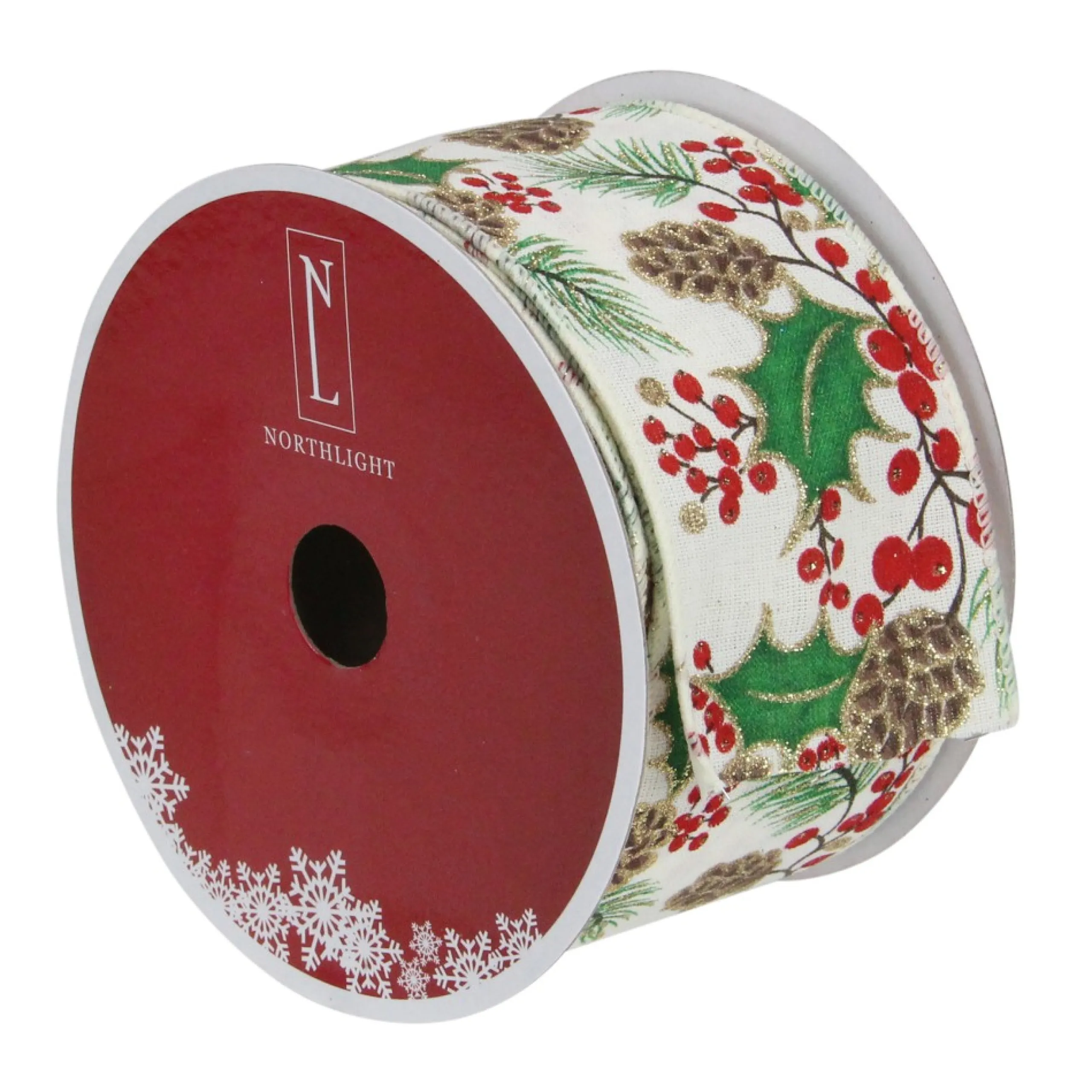 Ribbon*Northlight Glitter White And Green Holly Berries Christmas Wired Craft Ribbon 2.5″ X 16 Yards