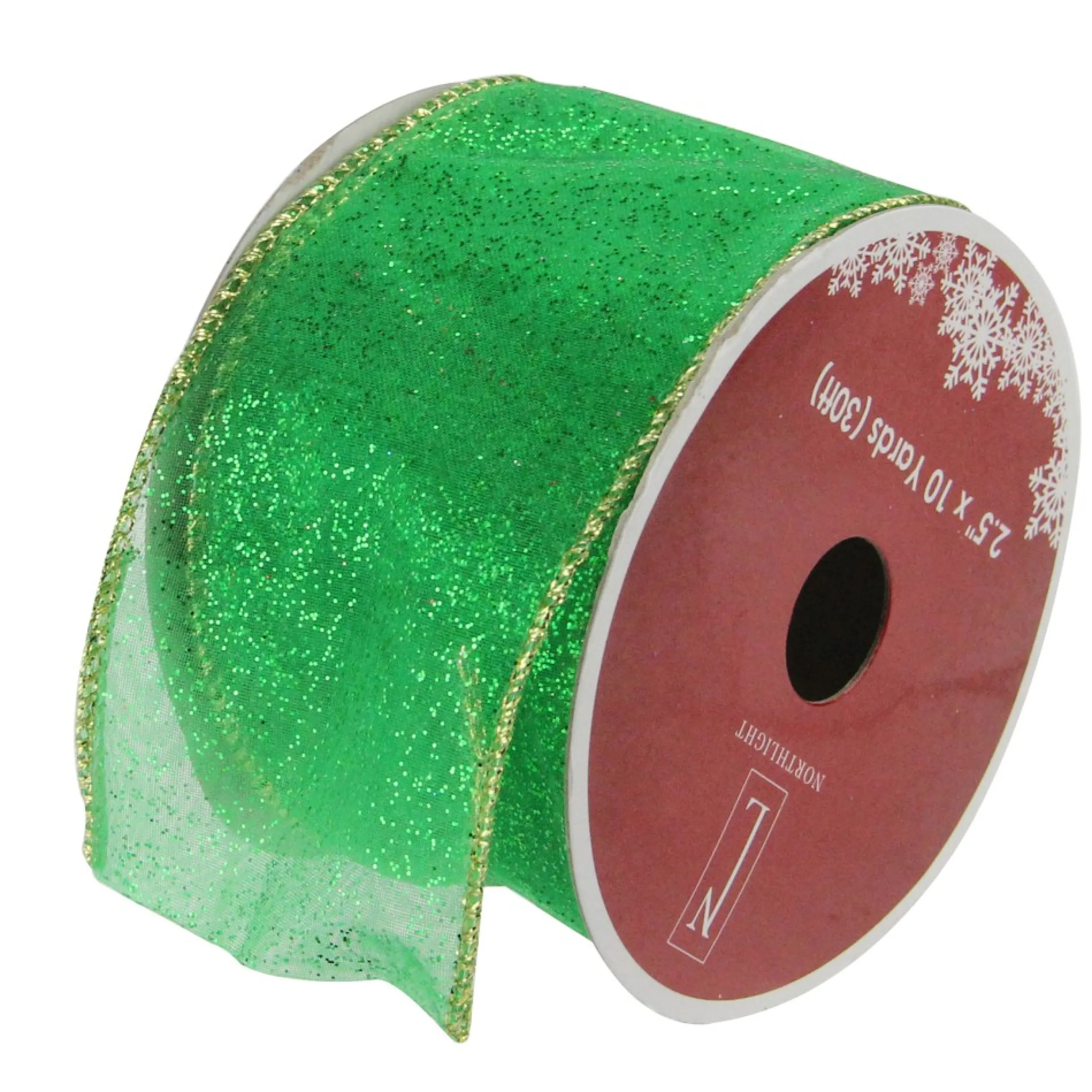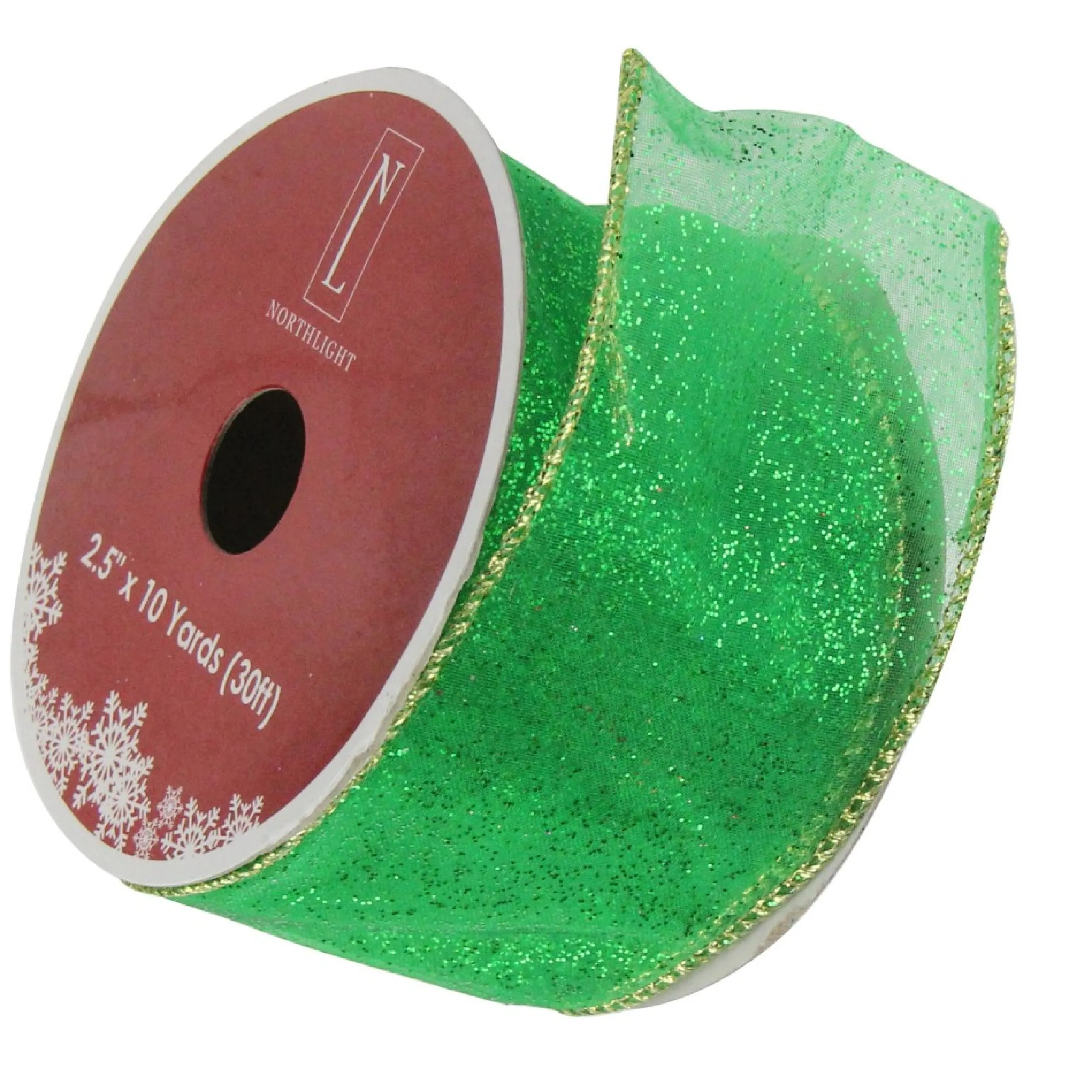 Ribbon*Northlight Glittering Green And Gold Solid Wired Christmas Craft Ribbon 2.5″ X 10 Yards