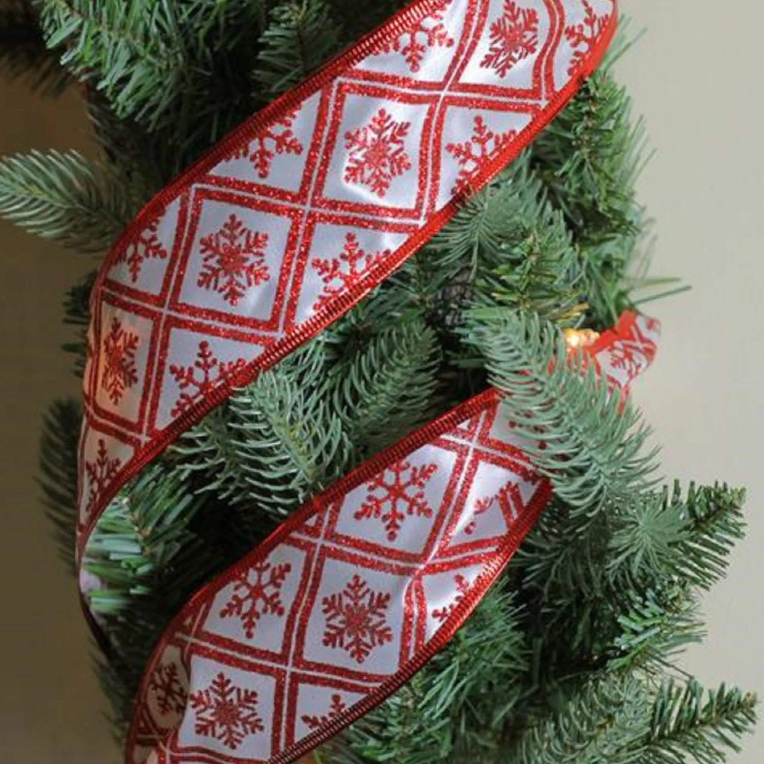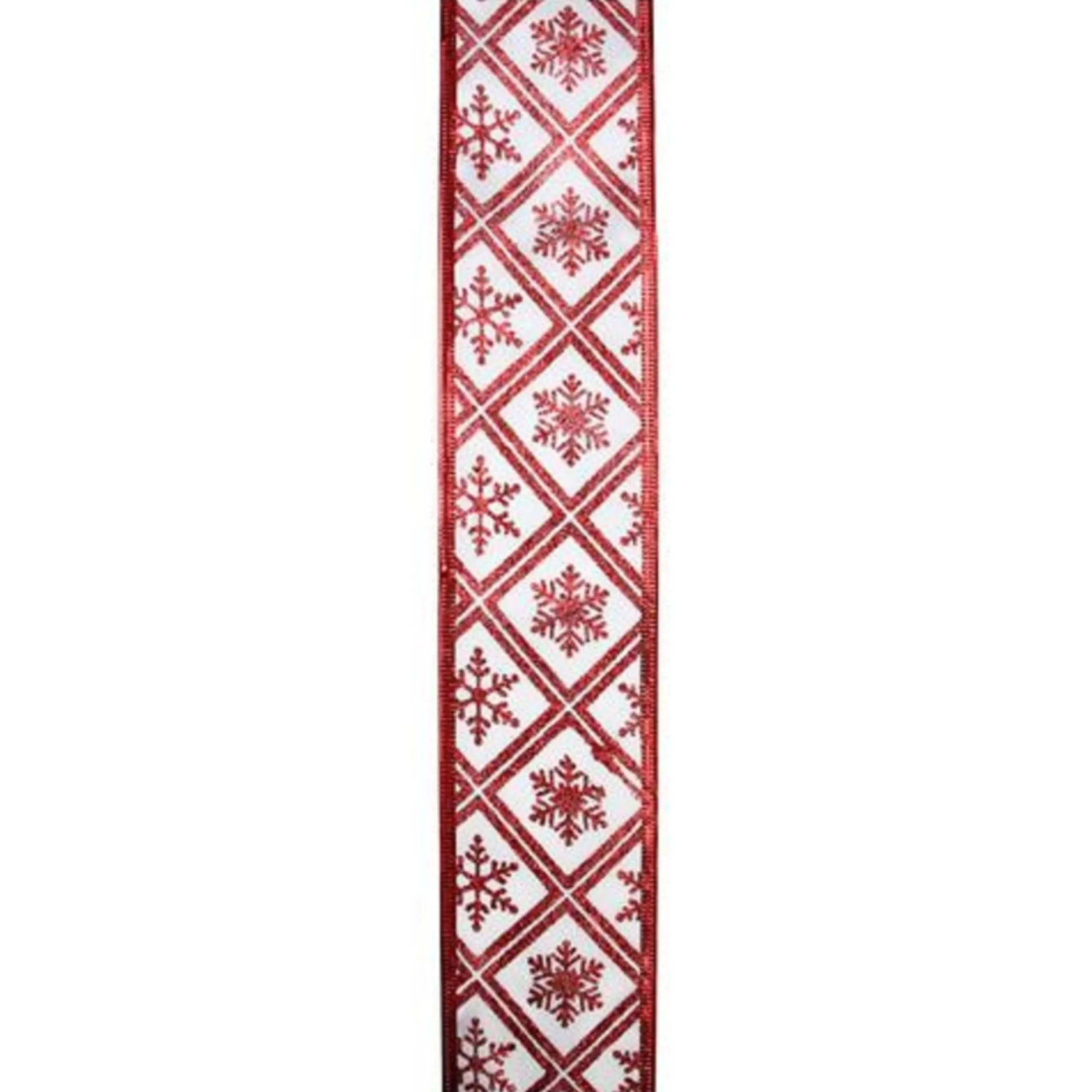 Ribbon Contains Snowflake And Diamond Designs With Red Wire Trim