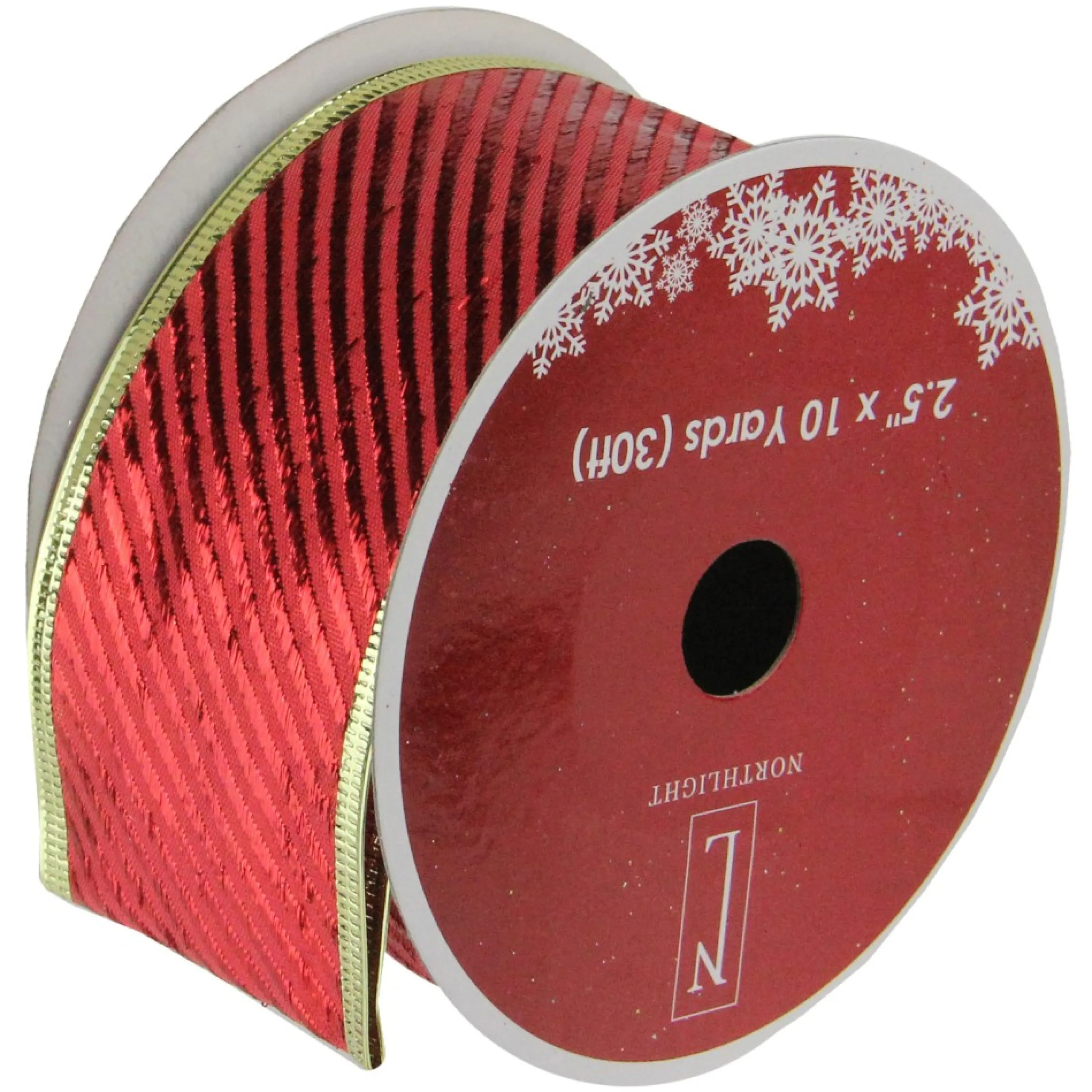 Ribbon*Northlight Shiny Red And Gold Striped Wired Christmas Craft Ribbon 2.5″ X 10 Yards