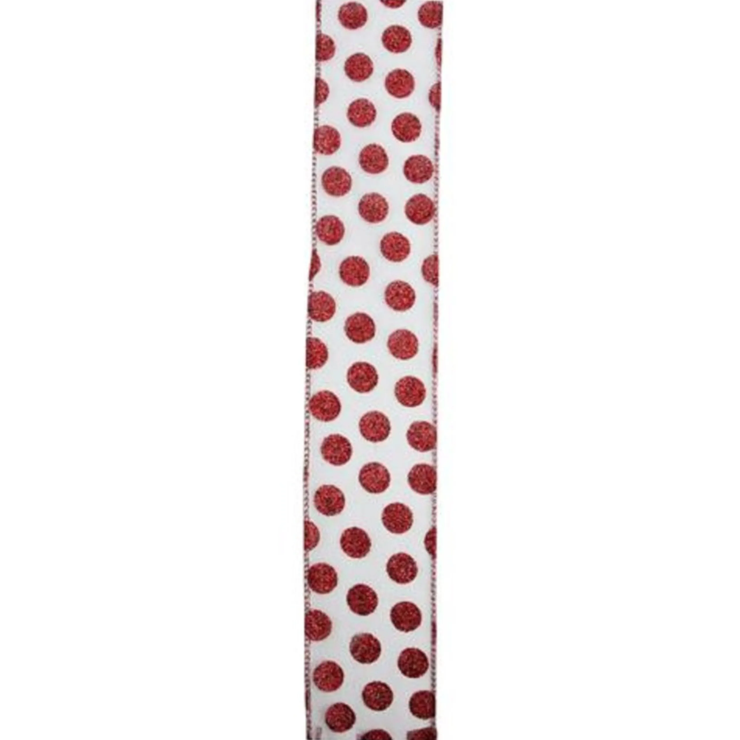 Ribbon*Northlight Silver And Red Glittering Polka Dots Christmas Wired Craft Ribbon 2.5″ X 10 Yards