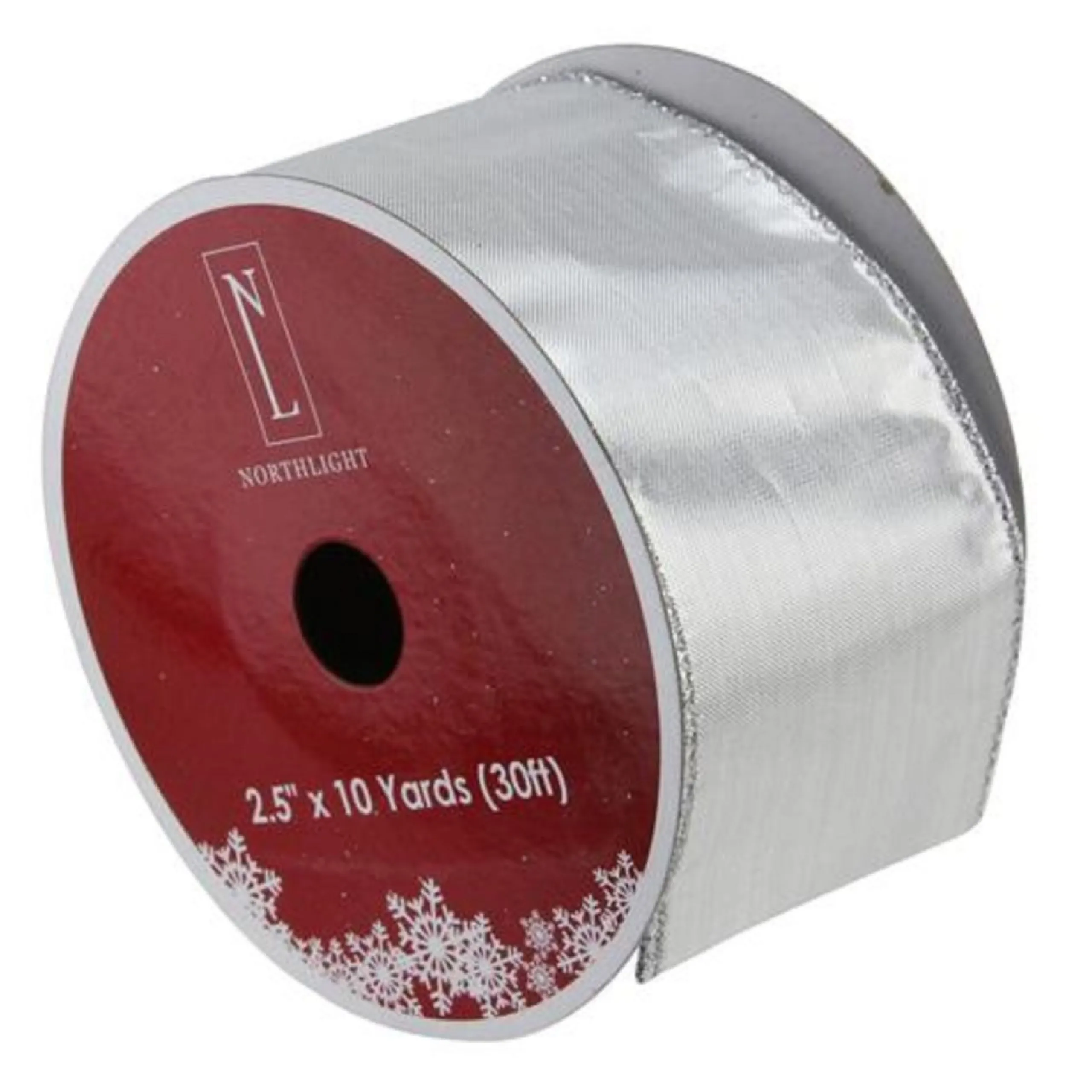 Ribbon*Northlight Silver Christmas Wired Craft Ribbon 2.5″ X 10 Yards