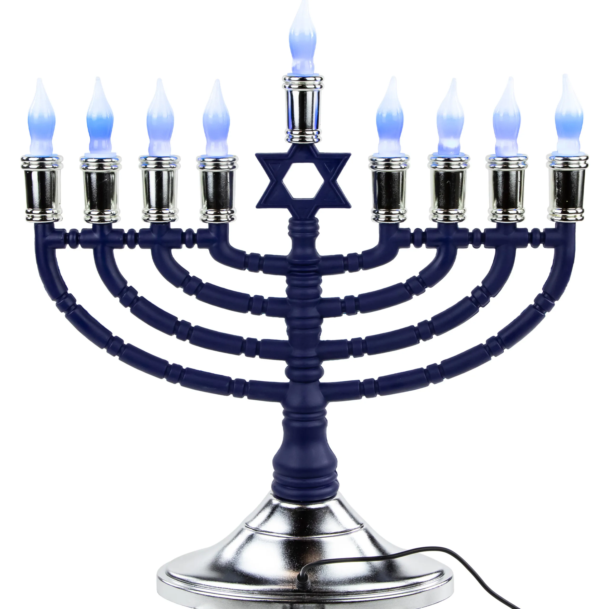 This Electric Menorah Is Perfect For Eco-Conscious Consumers! Featuring Elegant 2 Tone Blue And White Glass Led Bulbs Pe…