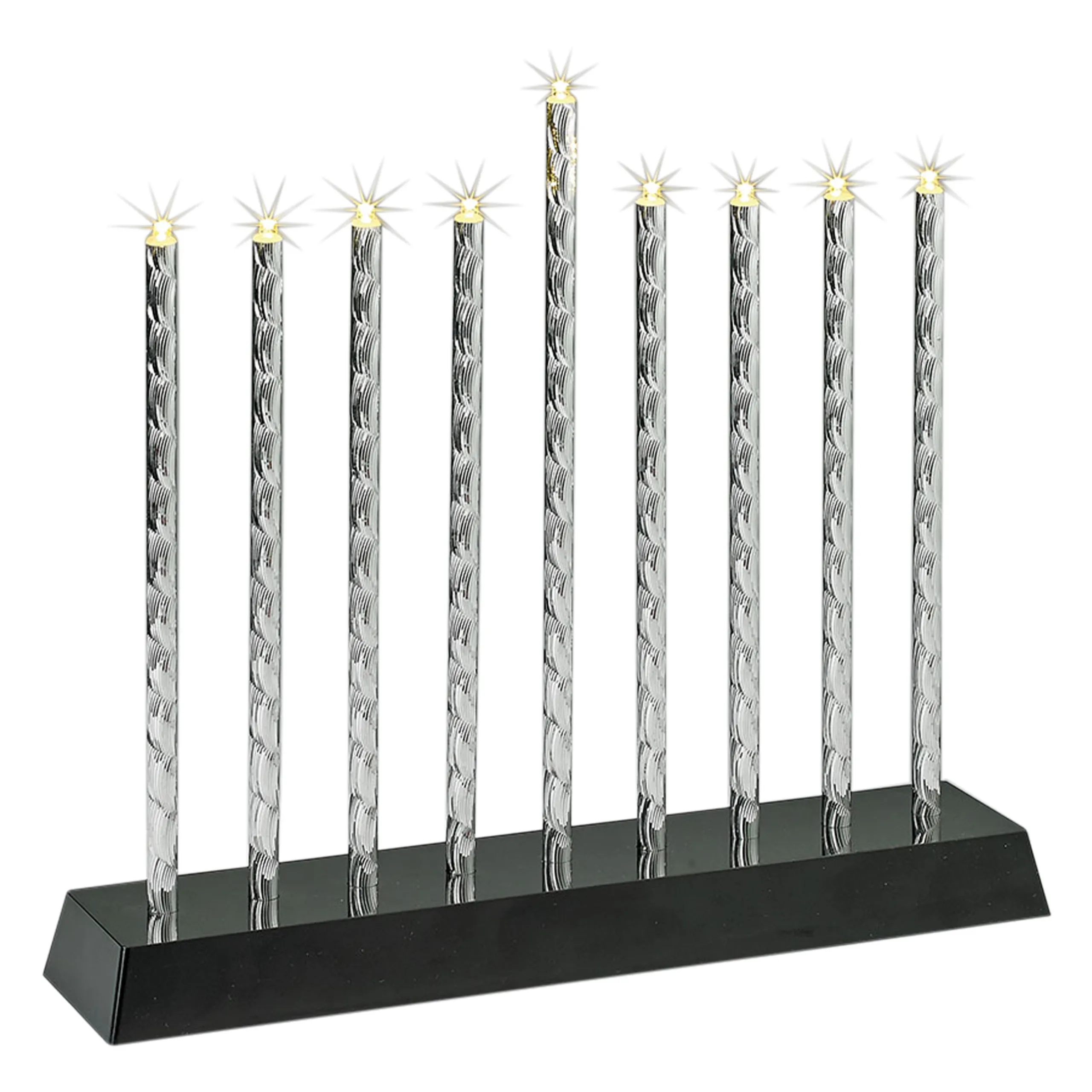 Rite Lite Silver Diamond Cut Battery Operated Led Menorah, 10.5In X 9In