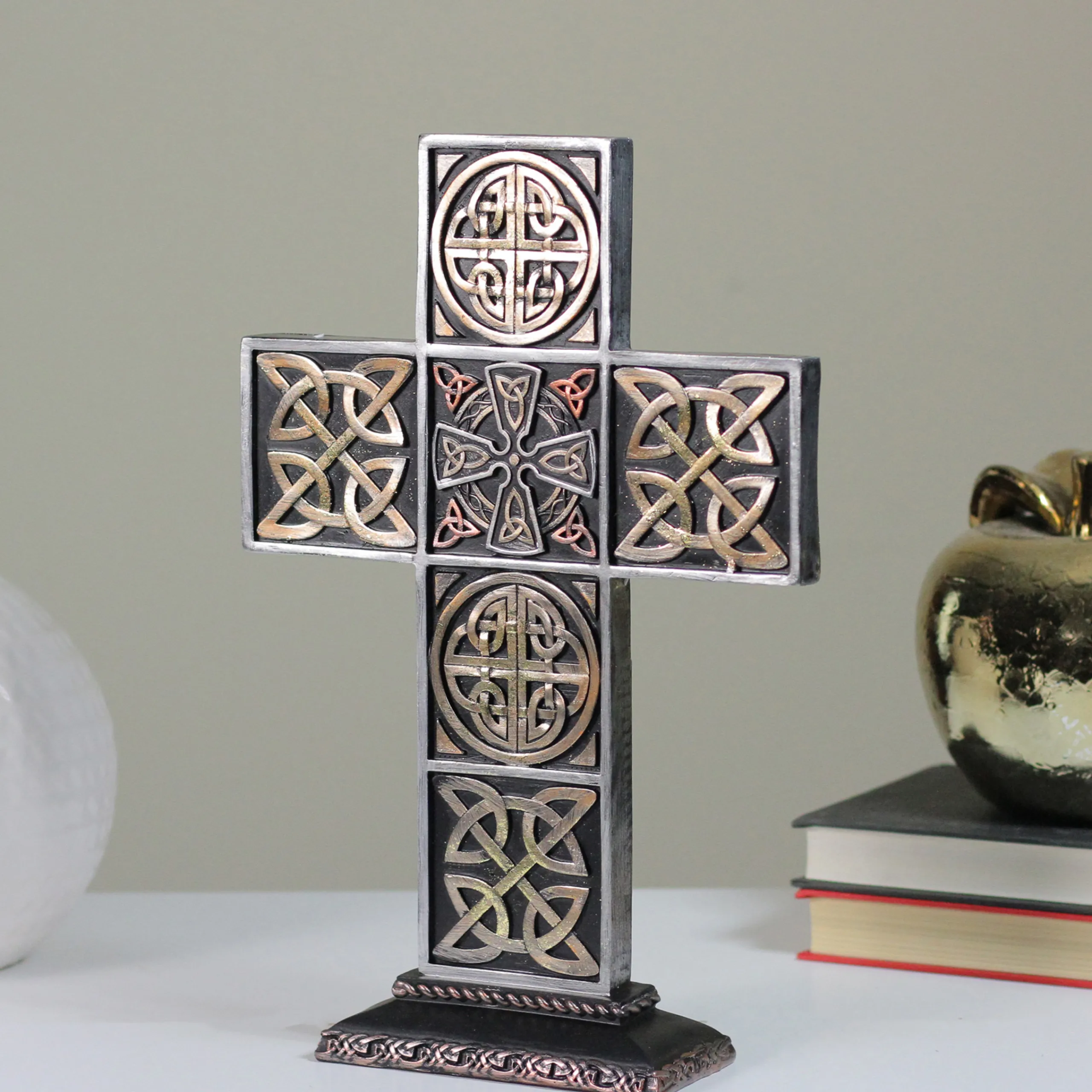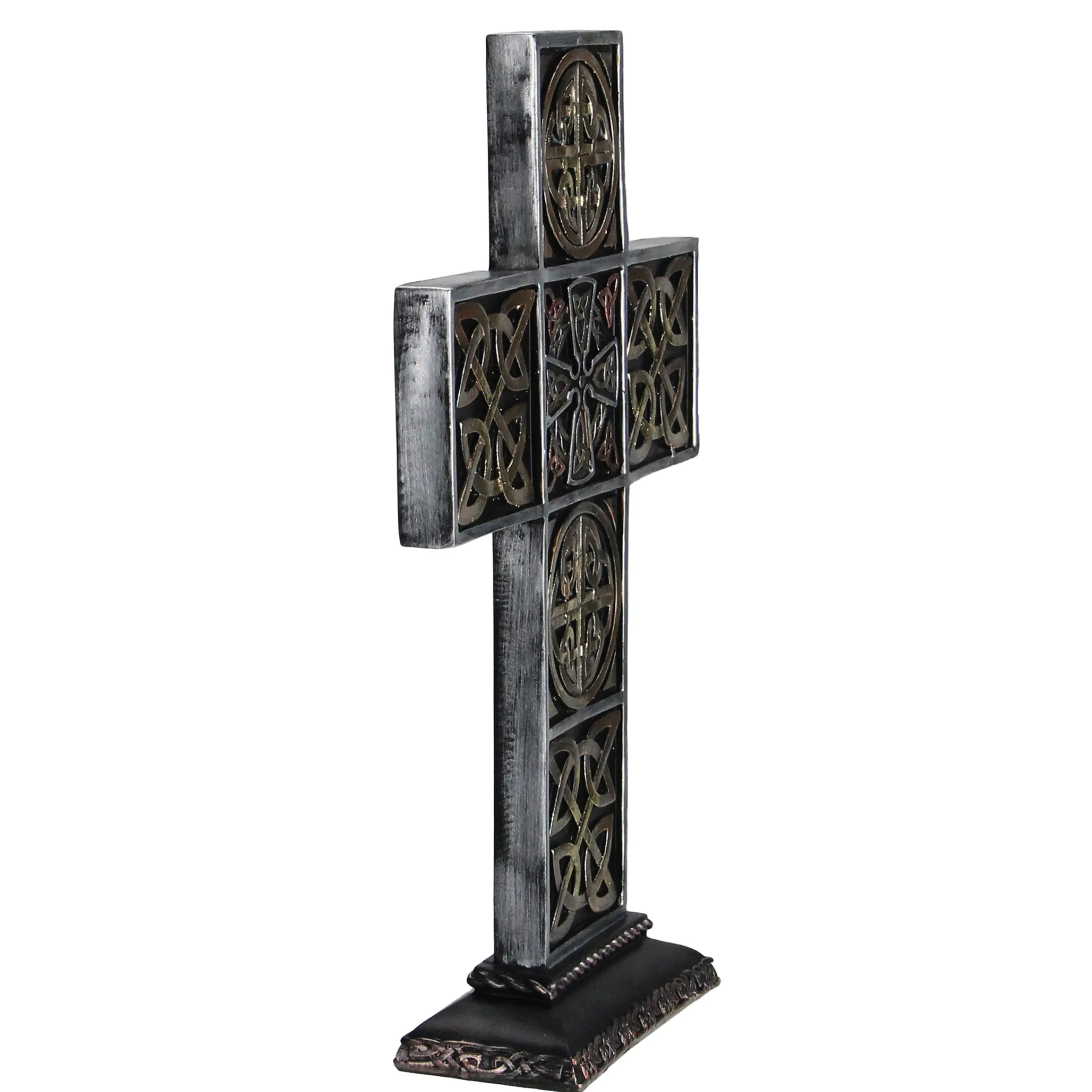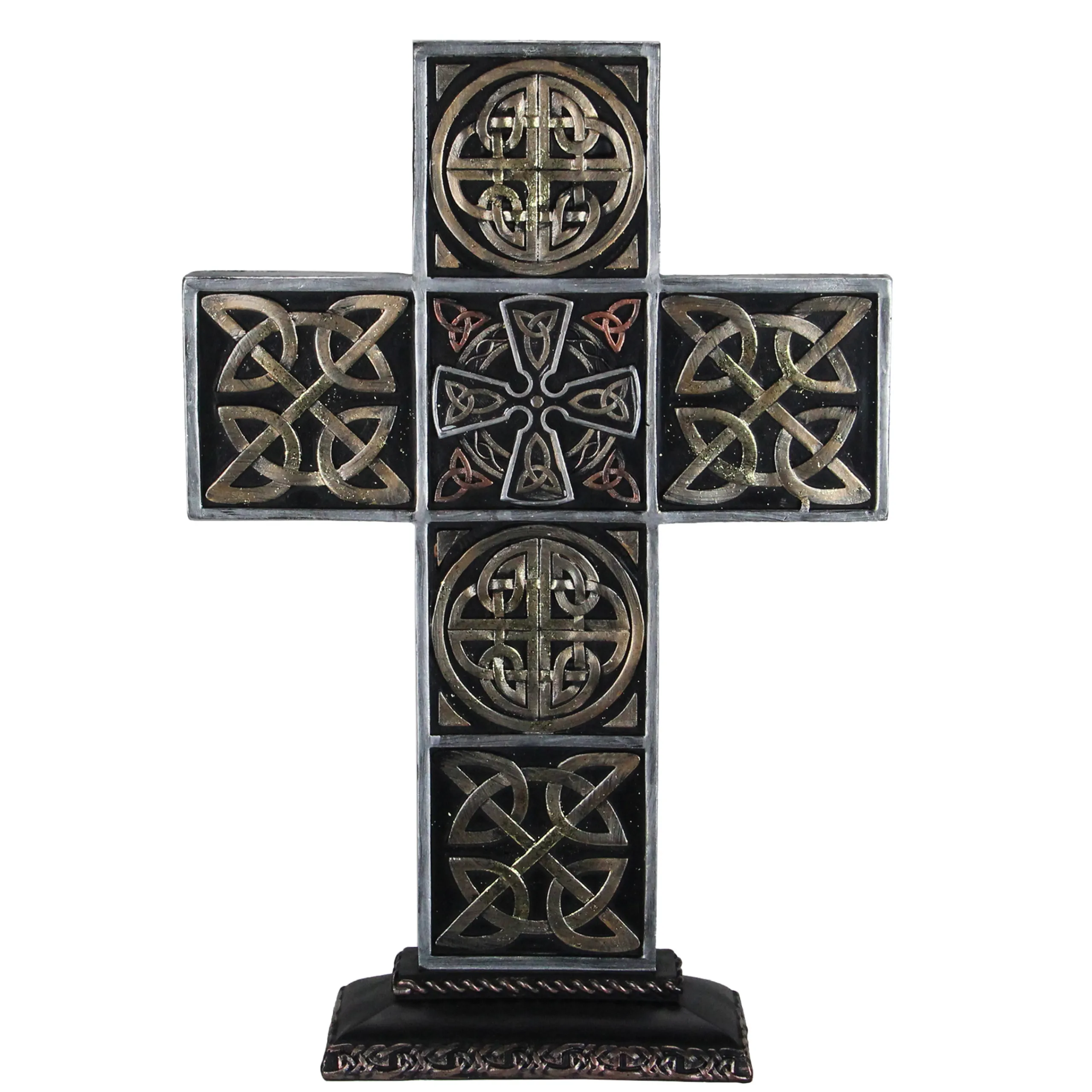 Roman 13″ Black And Brown Celtic Knot Cross Tabletop