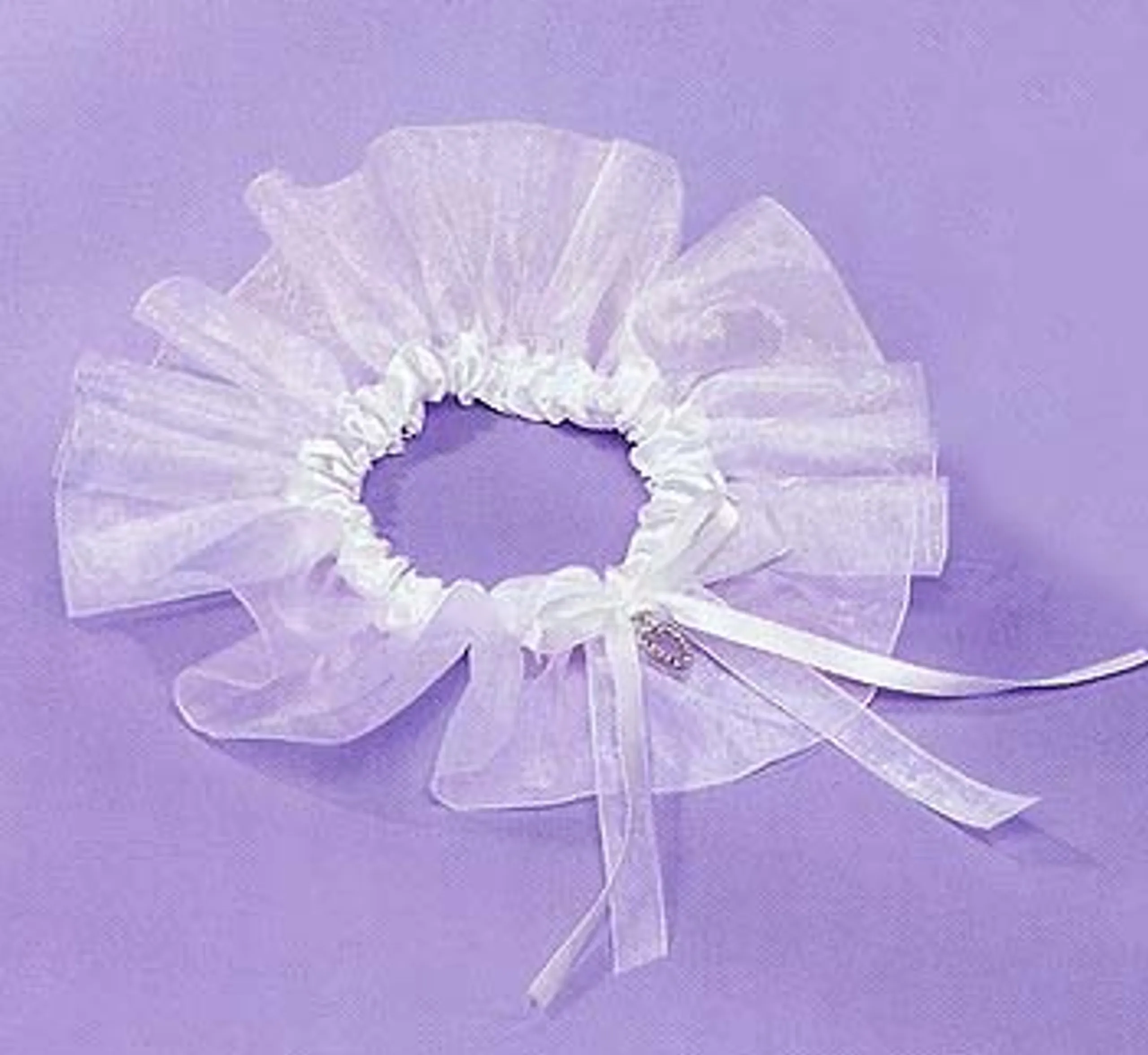 Russ 26″ White Satin Wedding Garter With Rhinestone Heart Charm