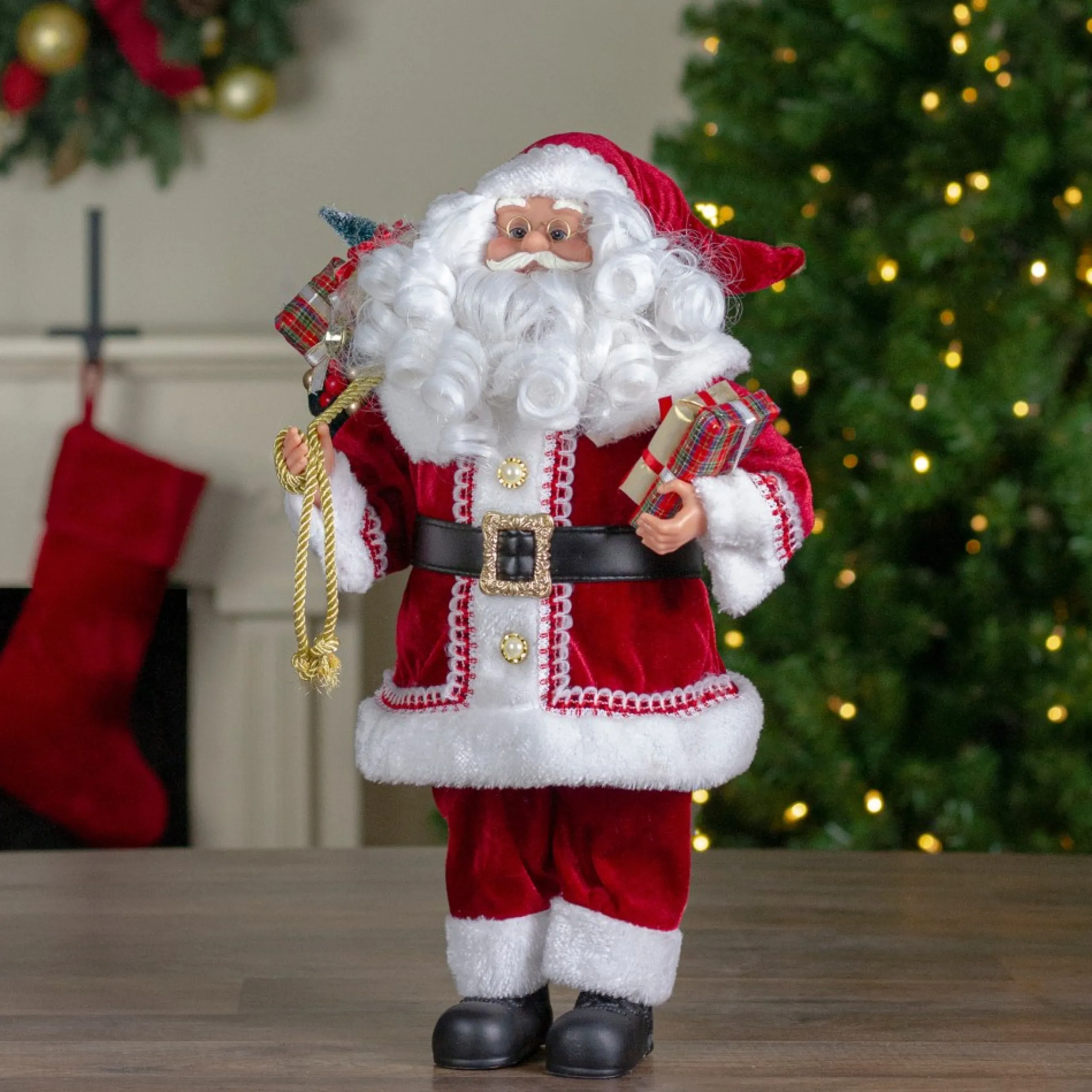 Santa Figures*Northlight 18-Inch Standing Curly Beard Santa Christmas Figure With Presents