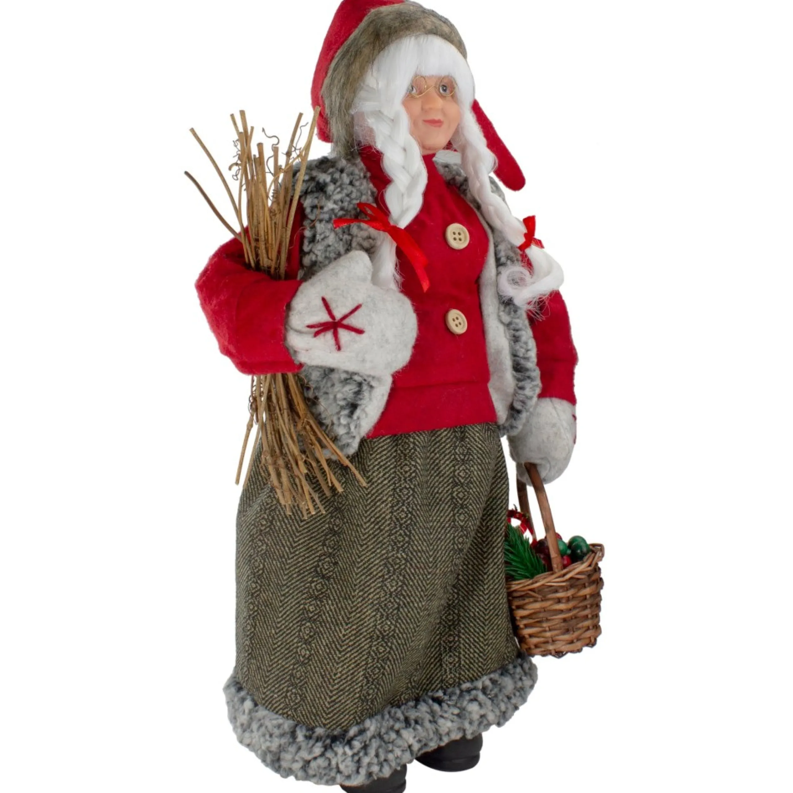 Santa Figures*Northlight 18″ Mrs. Clause Carrying A Basket Of Gifts And Firewood Christmas Figure