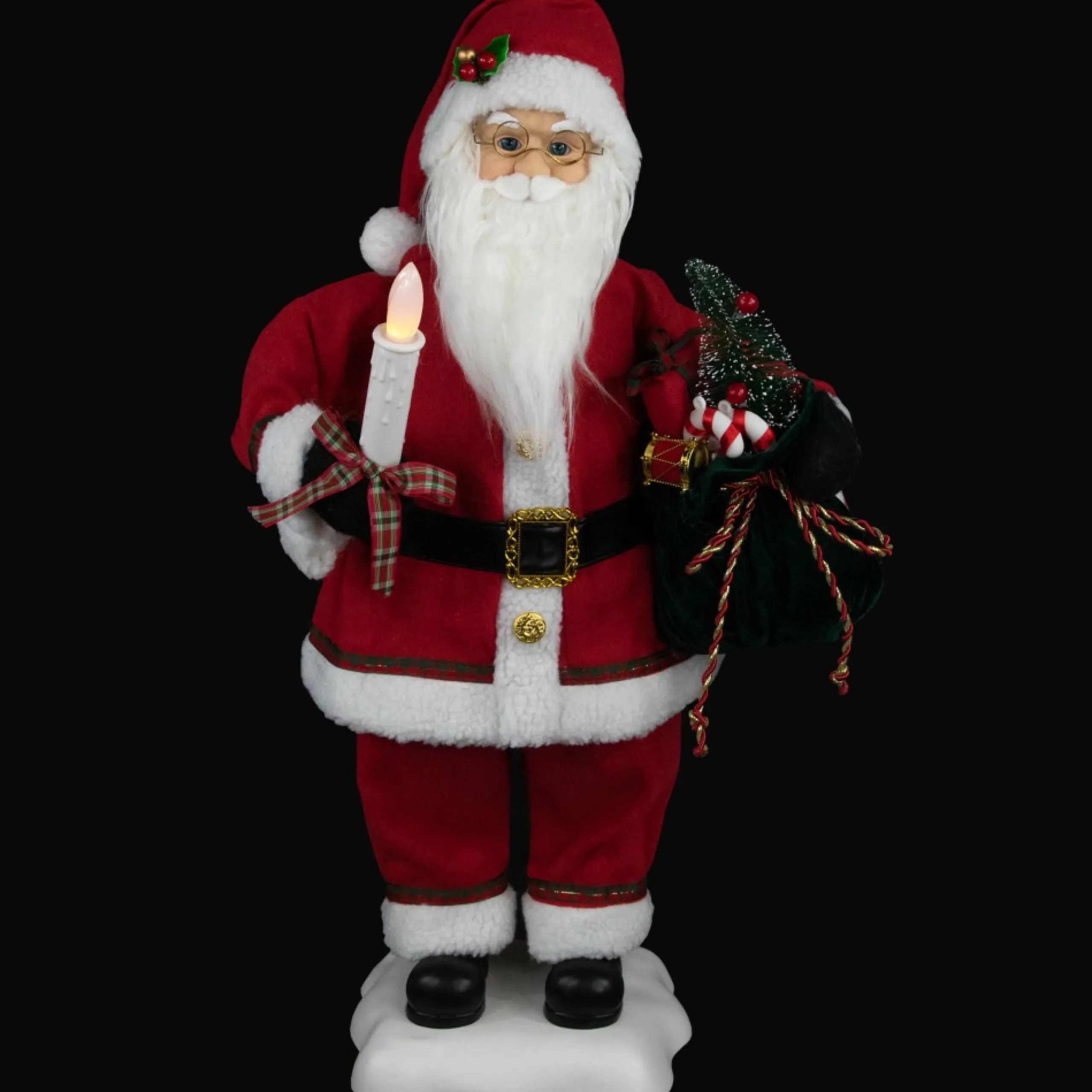 Santa Claus Is Full Of Christmas Charm And Would Make A Perfect Addition To Your Holiday Decor! He Is Wearing A Red And White Suit With Black Boots. Holding A Candelabra In His Hand, He Is Ready To Spread The Joy Of Christmas! He Is A Must-Have For Your Holiday Festivities!