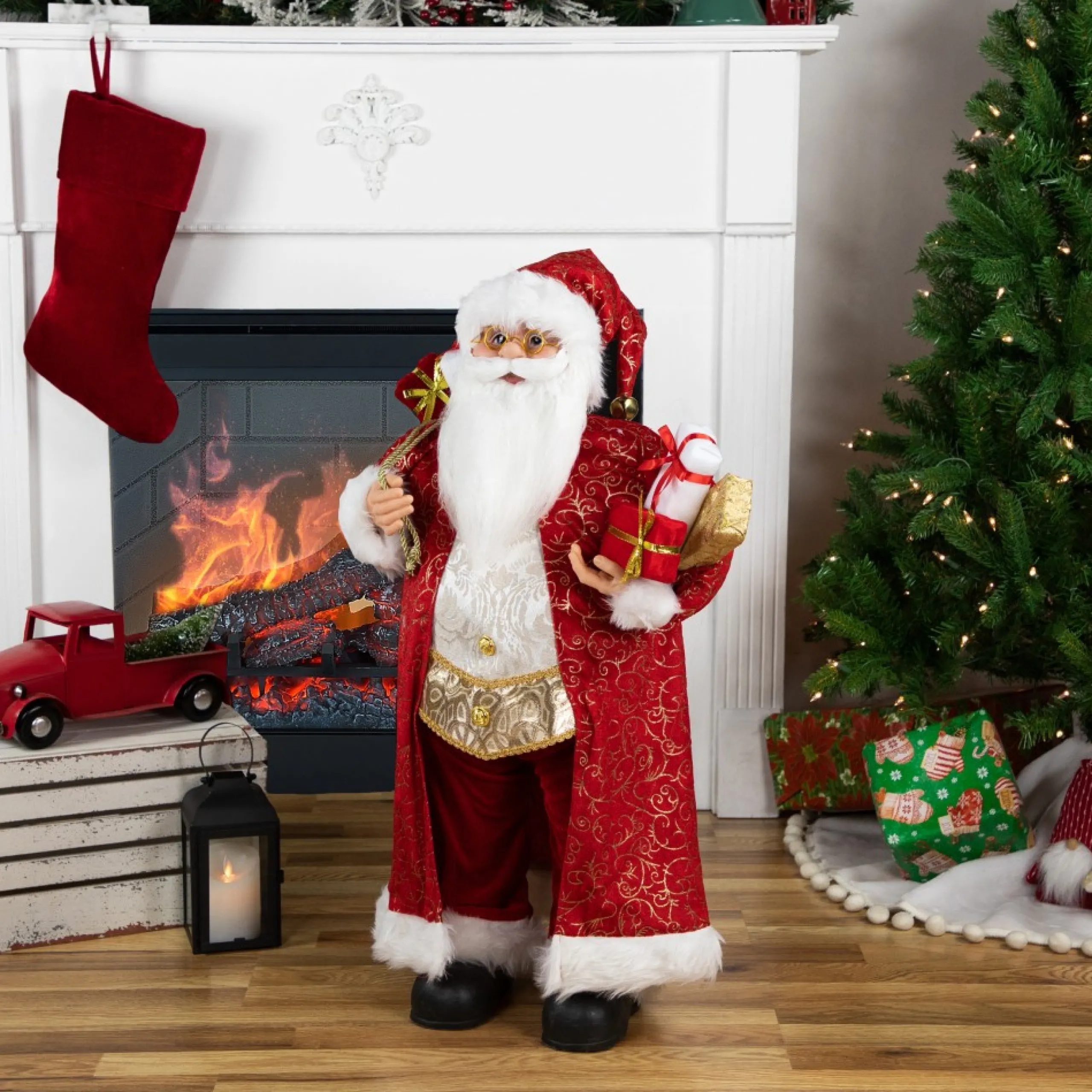 Santa Figures*Northlight 32″ Red And Gold Santa Claus With Gifts Christmas Figure