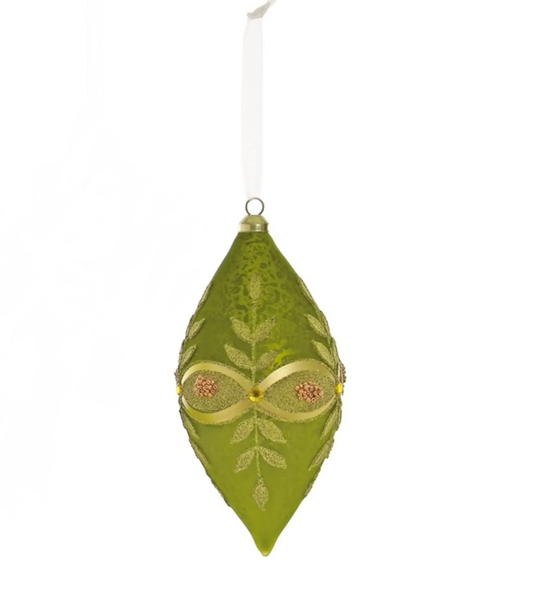 Featuring A Drop-Shaped Glass Ornament Embellished With Tiny Gold Beads In A Leaf Pattern