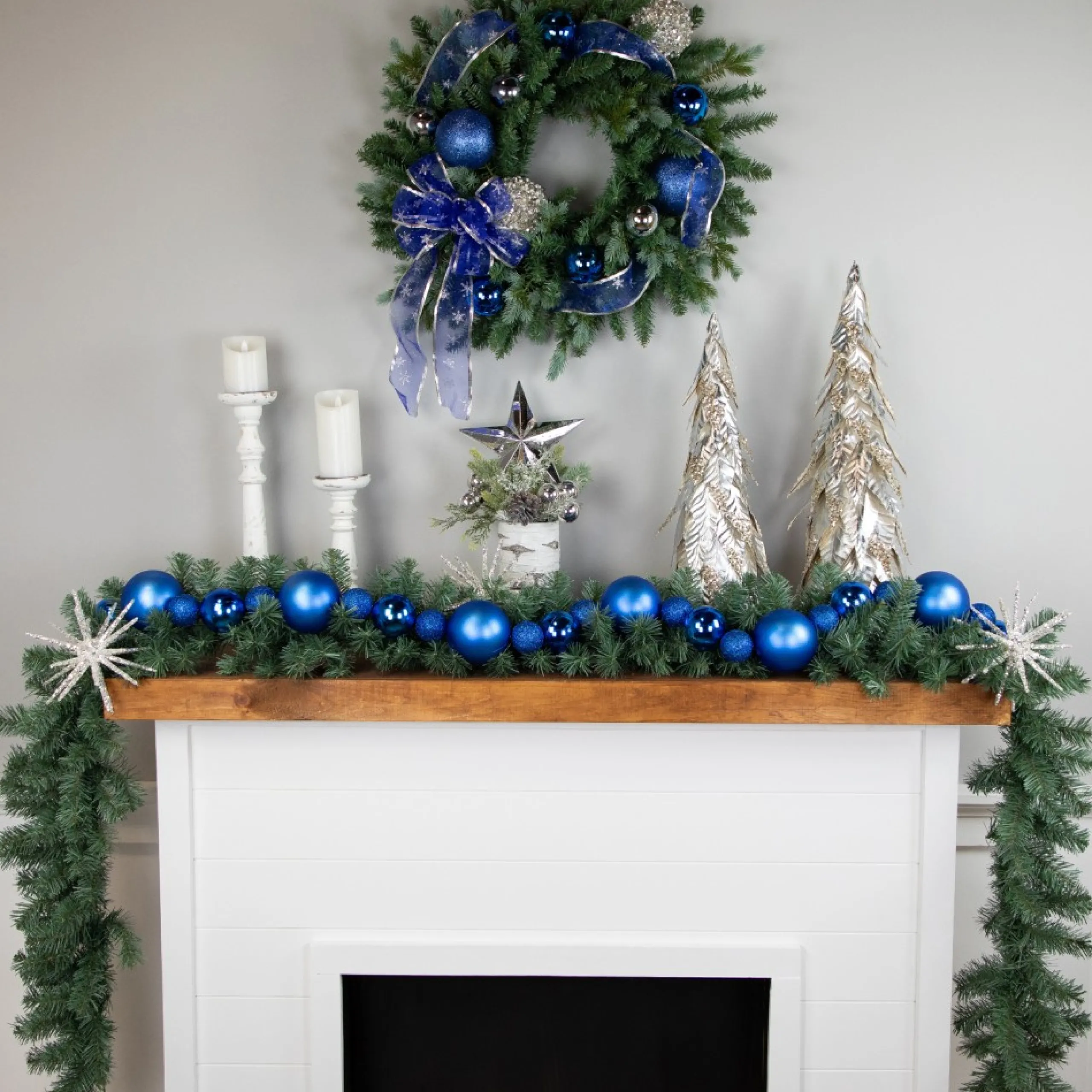 Shatterproof Ball Garland*Northlight 6′ Blue Shatterproof Ball 3-Finish Christmas Garland