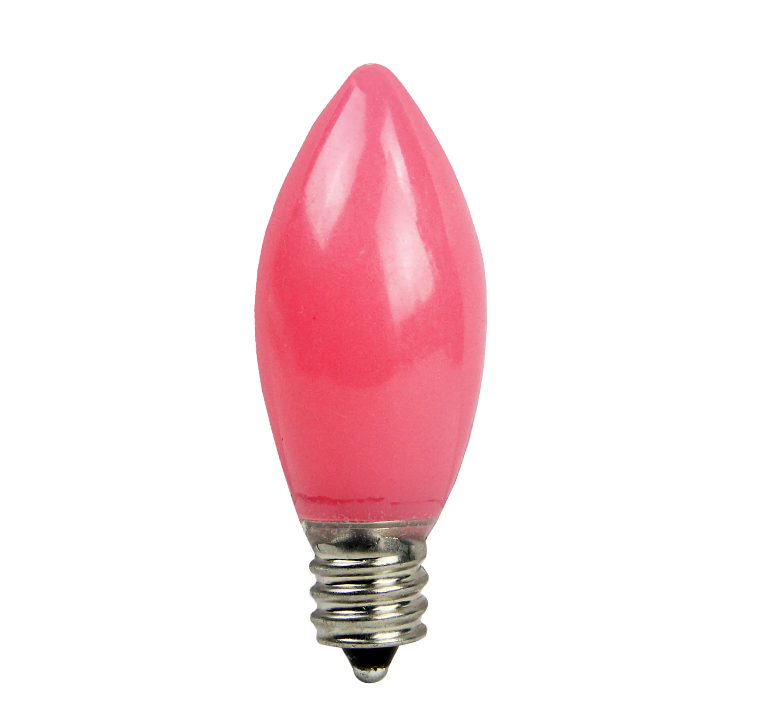 Product Features: Finish: Opaque Color: Pink Led Lights Use 90% Less Energy Durable Non-Glass Replaceable Bulbs Size: C9…