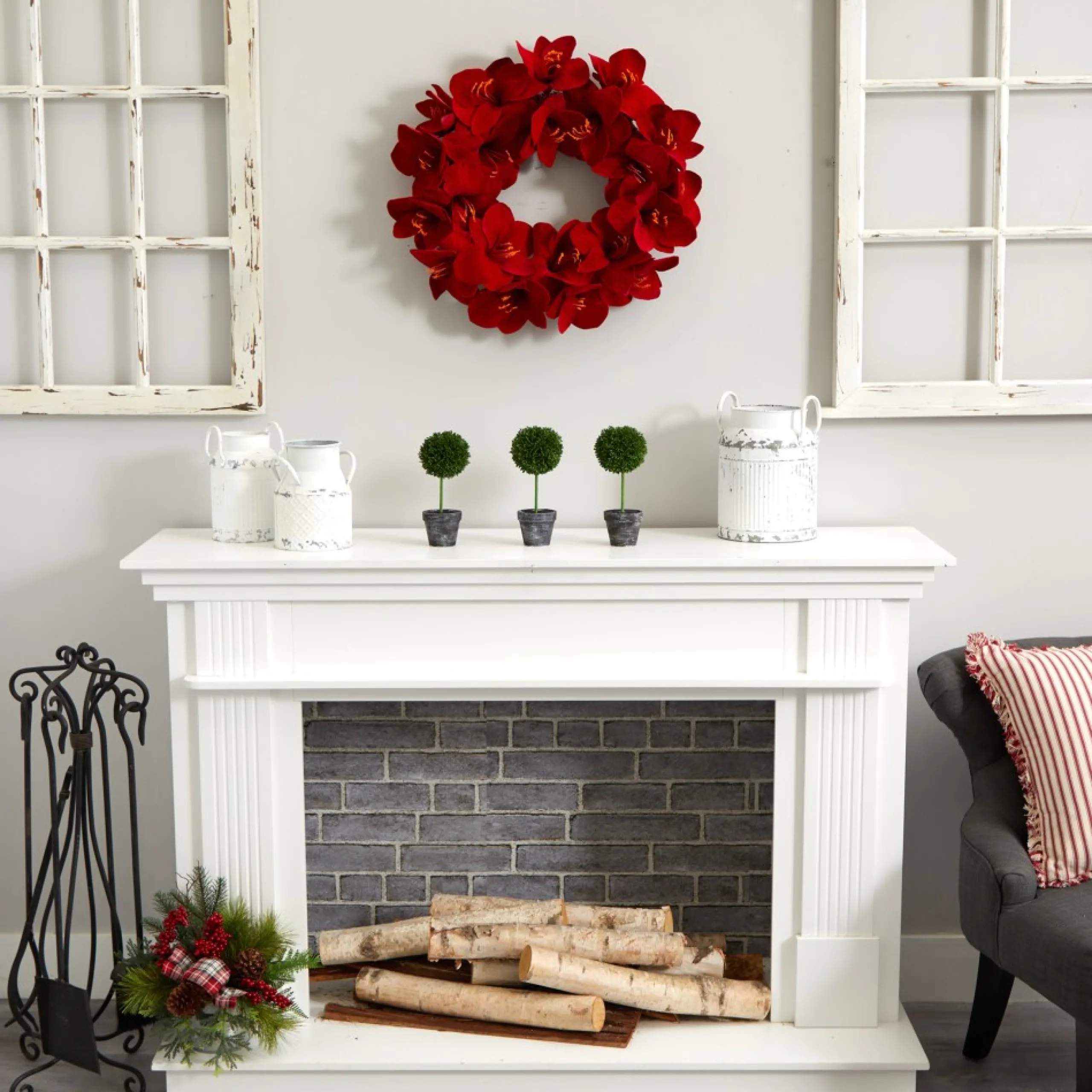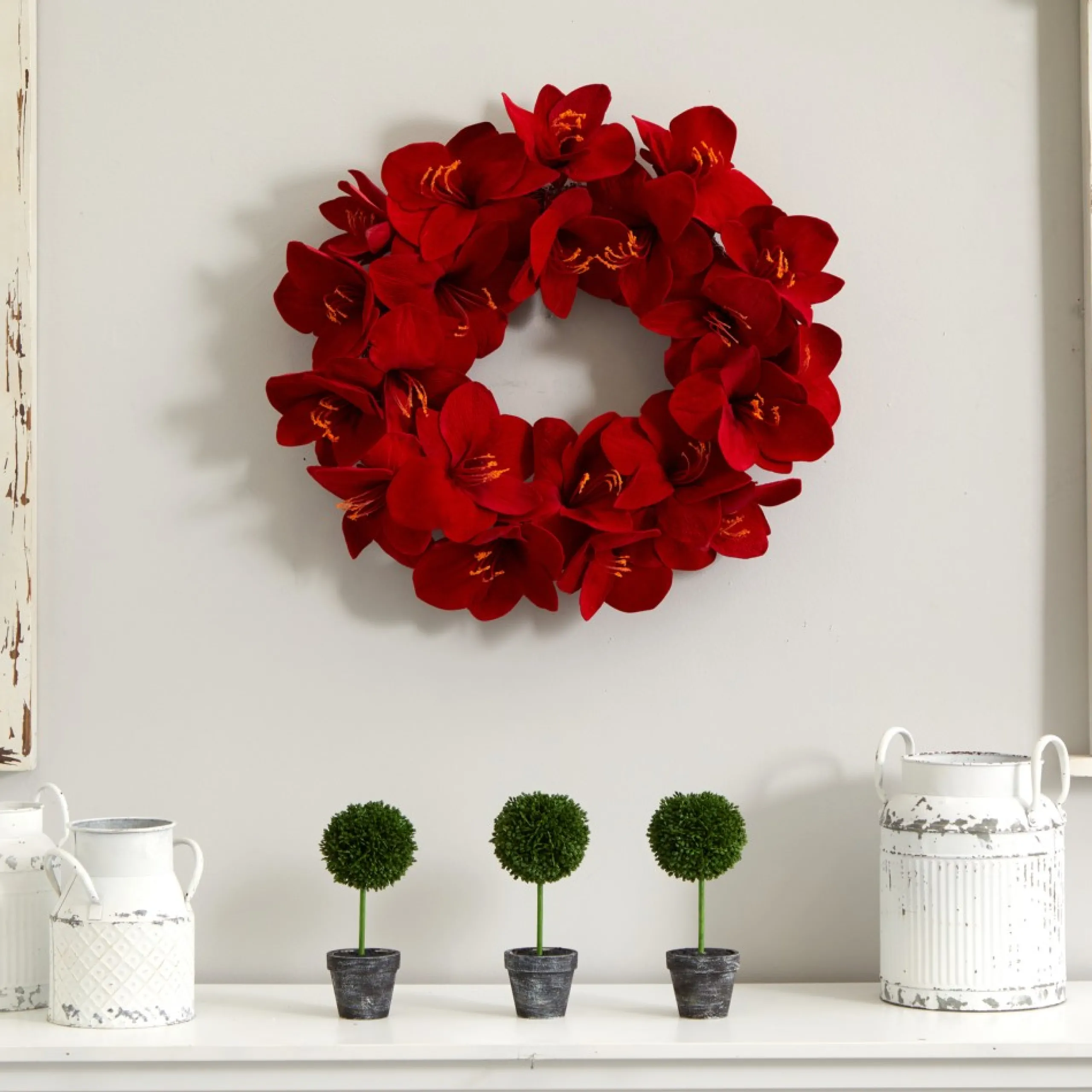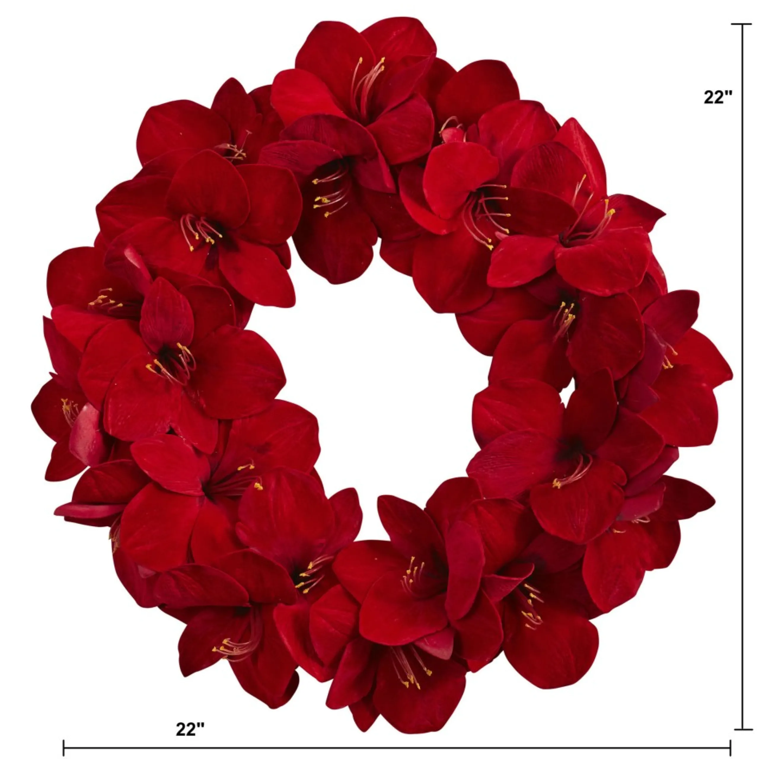 Specialty Wreaths*Nearly Natural Red Amaryllis Artificial Floral Christmas Wreath, 22-Inch, Unlit