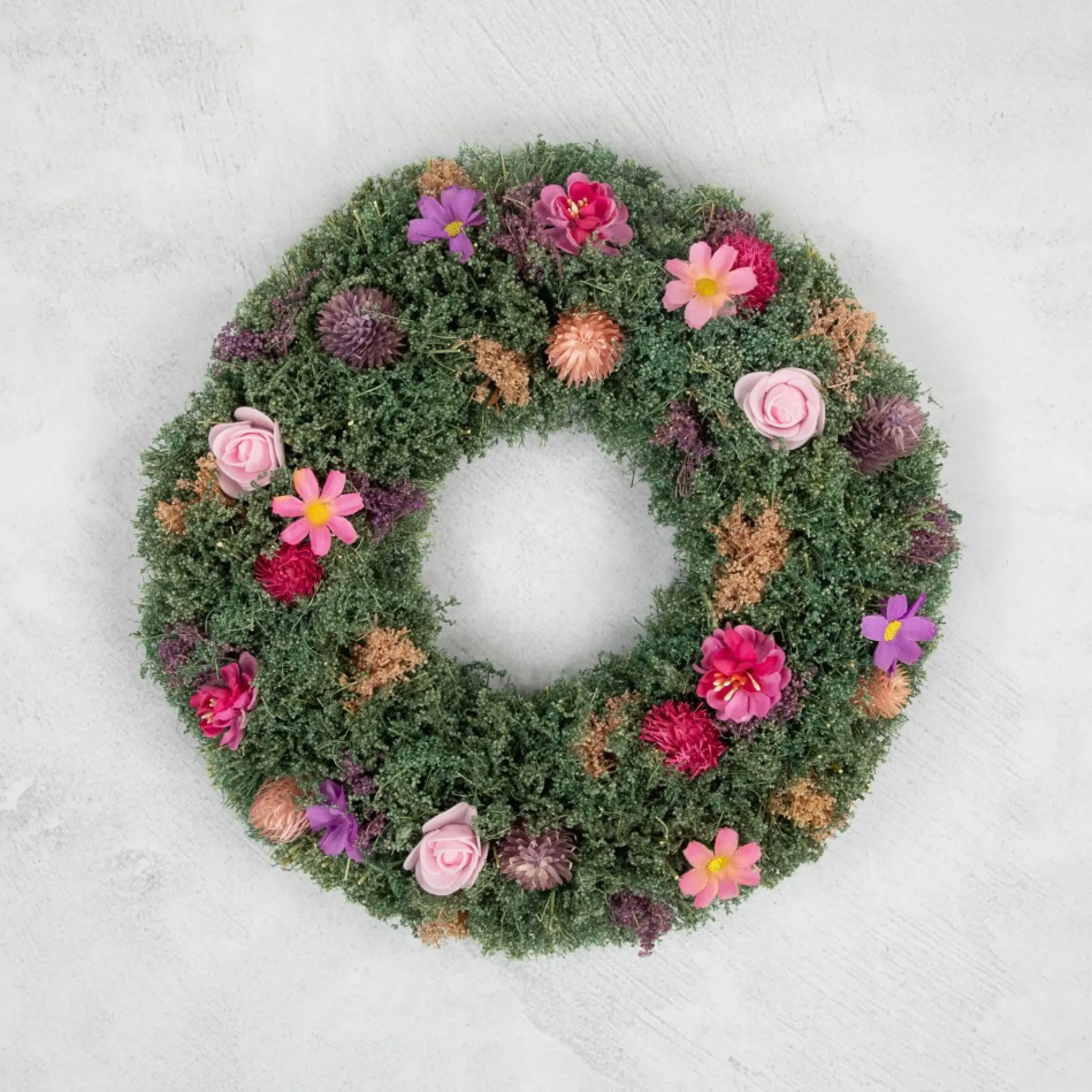 Celebrate The Beauty Of Spring With Our Stunning Mixed Floral Wreath! This Wreath Is Handcrafted With A Base Of Carefully Preserved Foliage In Green, Pink And Purple. Designed With Delicate Petite Purple And Pink Flowers, It Will Bring Spring To The Doorstep Of Your Home. The Combination Of Soft Pink Roses And Vibrant Purple Thistles, Create A Lovely Contrast Of Color And Texture. Add A Decorative Rope To Hang On Your Front Door, Above Your Mantel, Or Lay Flat As A Centerpiece Display And Bring The Joy Of Spring Into Your Home!