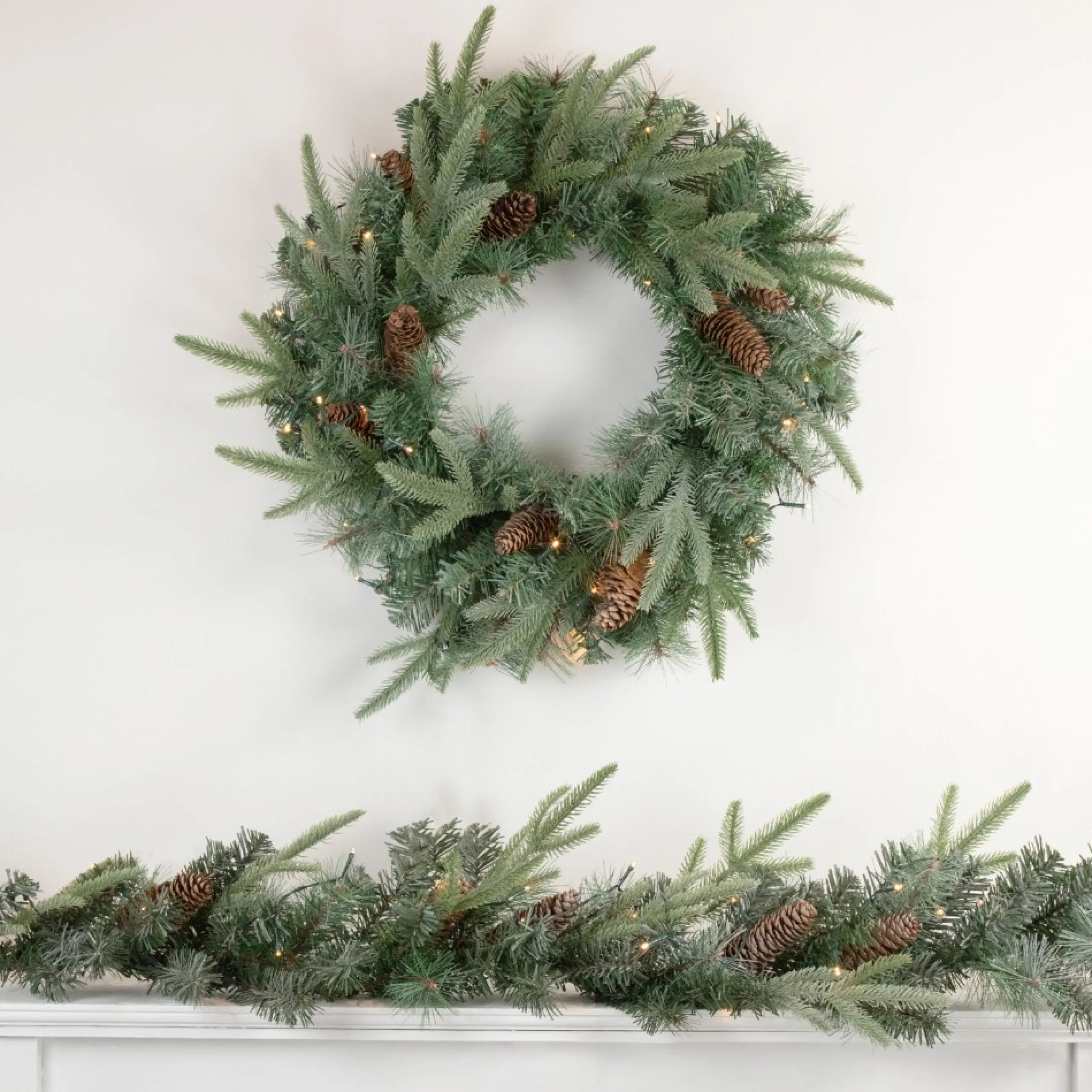 Specialty Wreaths*Northlight 24″ Pre-Lit Artificial Mixed Pine And Pine Cone Christmas Wreath