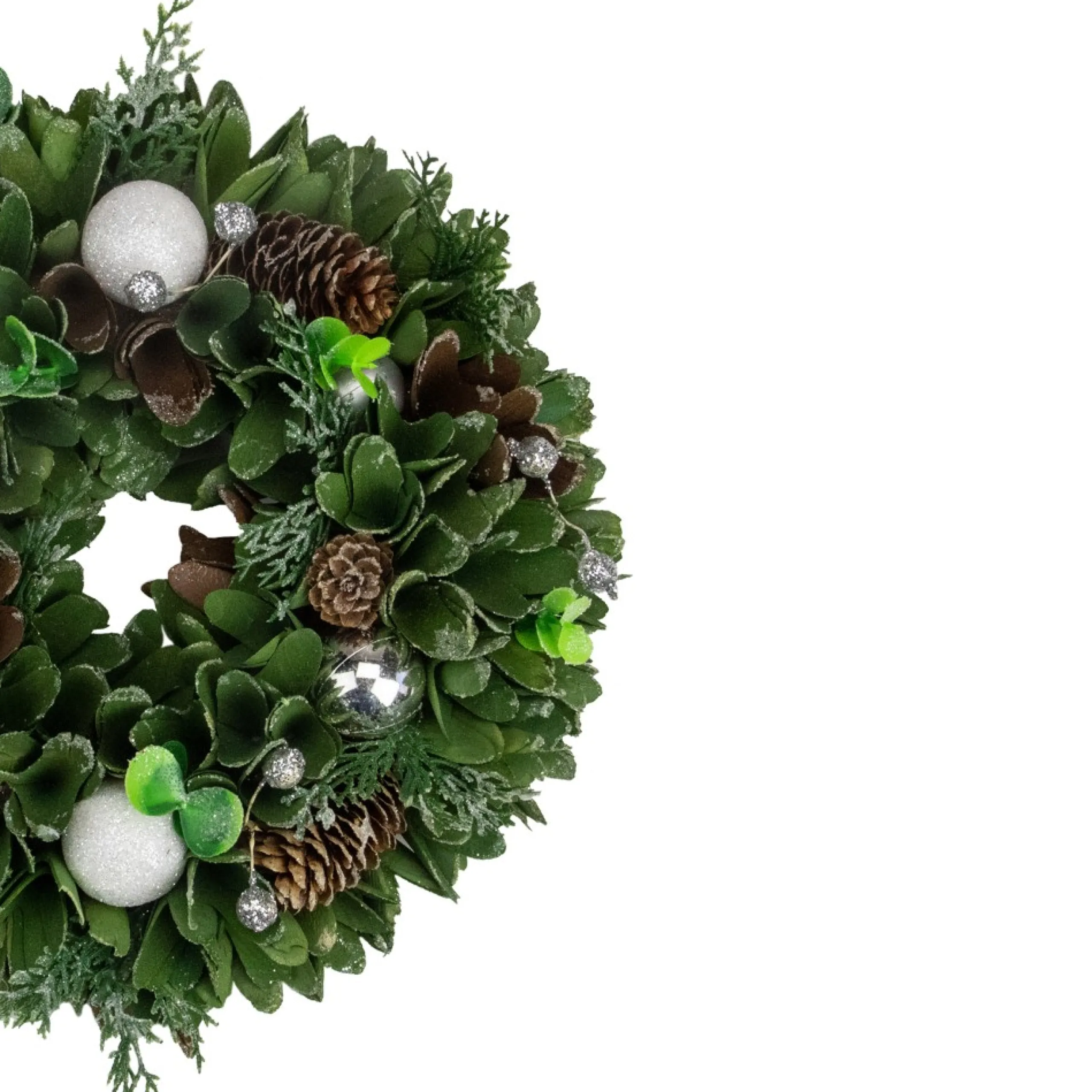 Make A One Of A Kind Display In Your Home This Season With This Decorated Wreath. The Wreath Features White Ornaments, Silver Berries, Pinecones, With Accents Of Glitter All Of These Characteristics Will Make Your Guests Wonder Where You Got This Amazing Wreath From. You Can Add The Wreath To A Door, Wall, Or Even Given Away As A Present This Christmas.