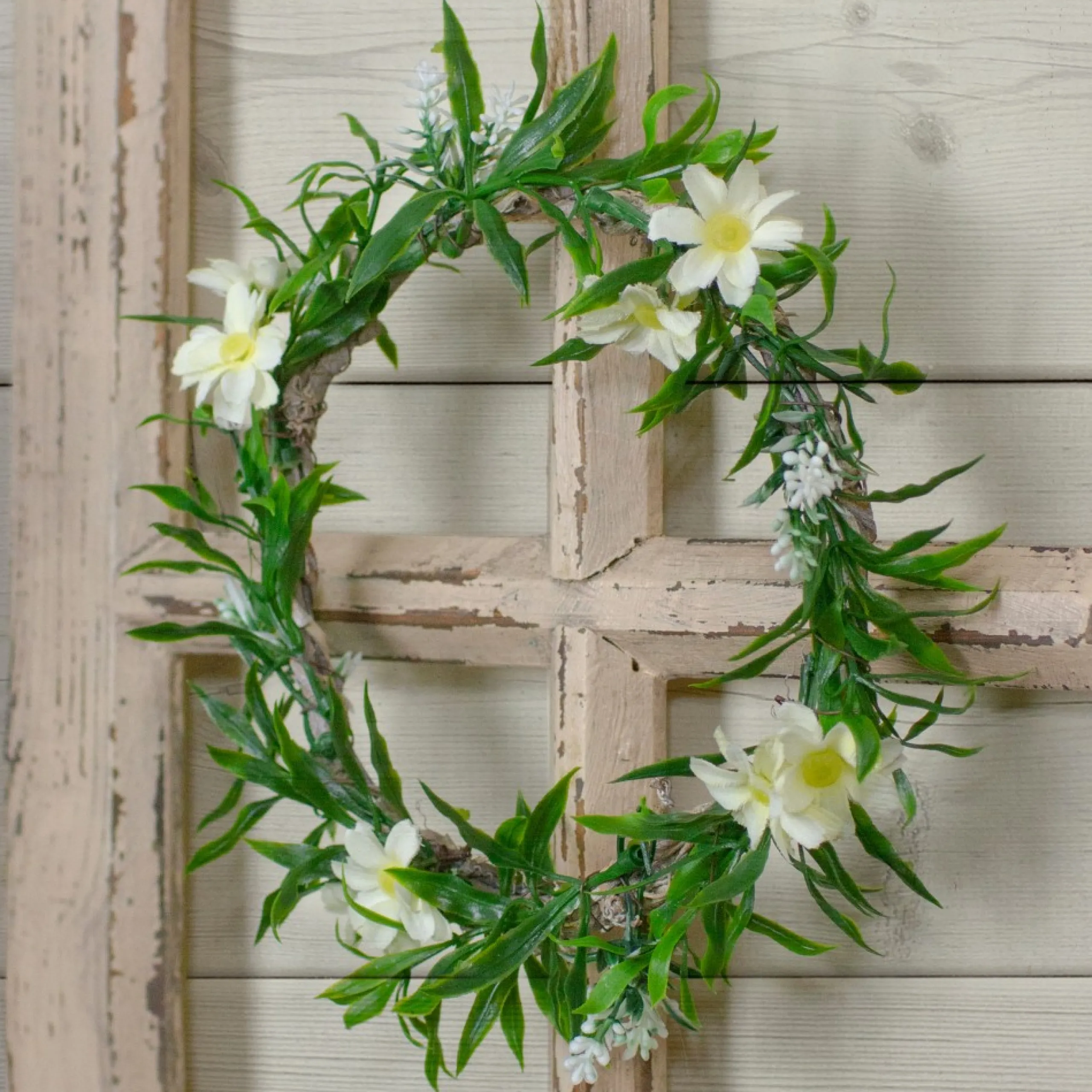 Add Soft Hues To Your Spring Decor With This Mini Floral Wreath. Featuring Realistic Yellow Silk Flowers Intertwined With A Natural Grapevine Base, What Better Way To Welcome Guests To Your Home. Can Be Hung Or Displayed On A Tabletop.