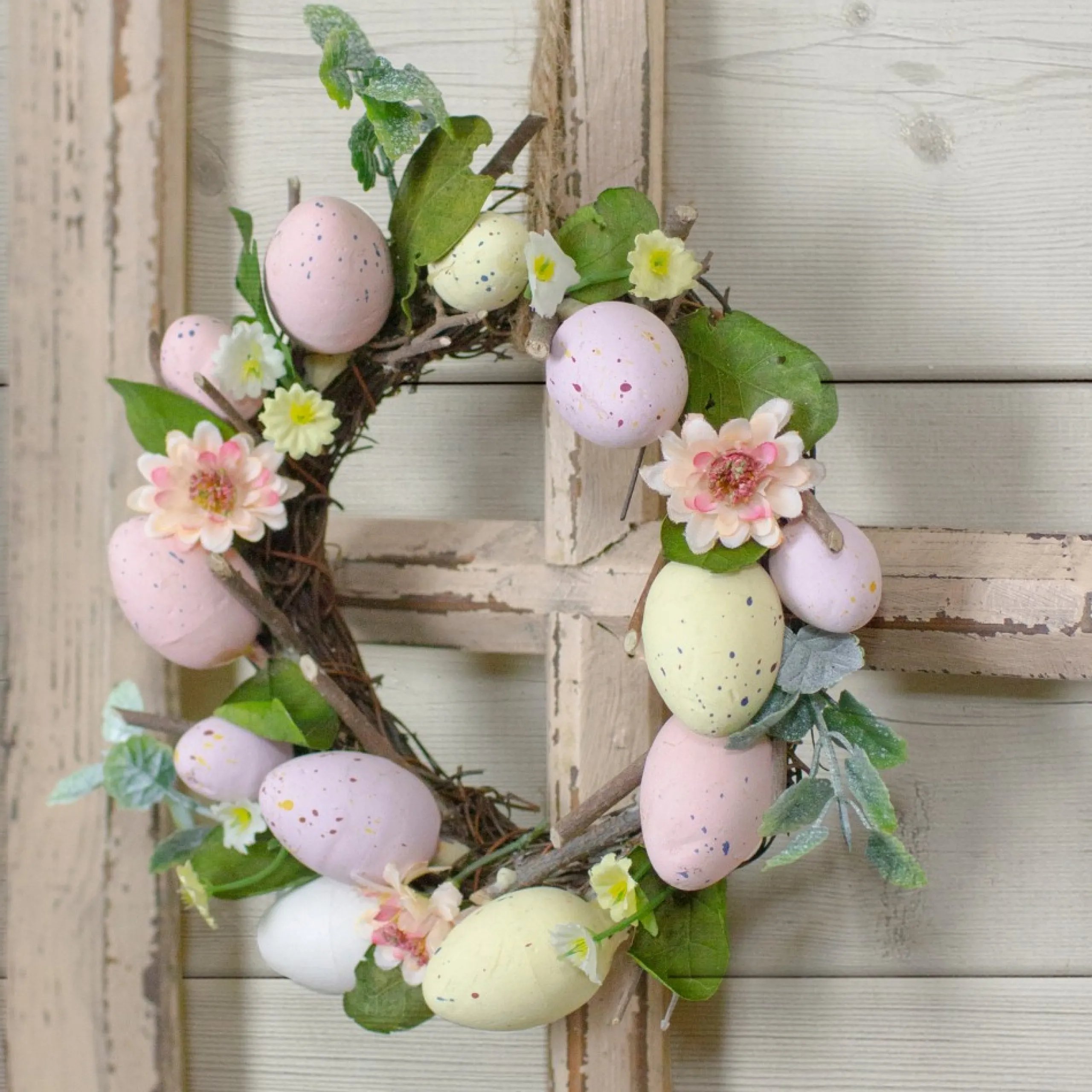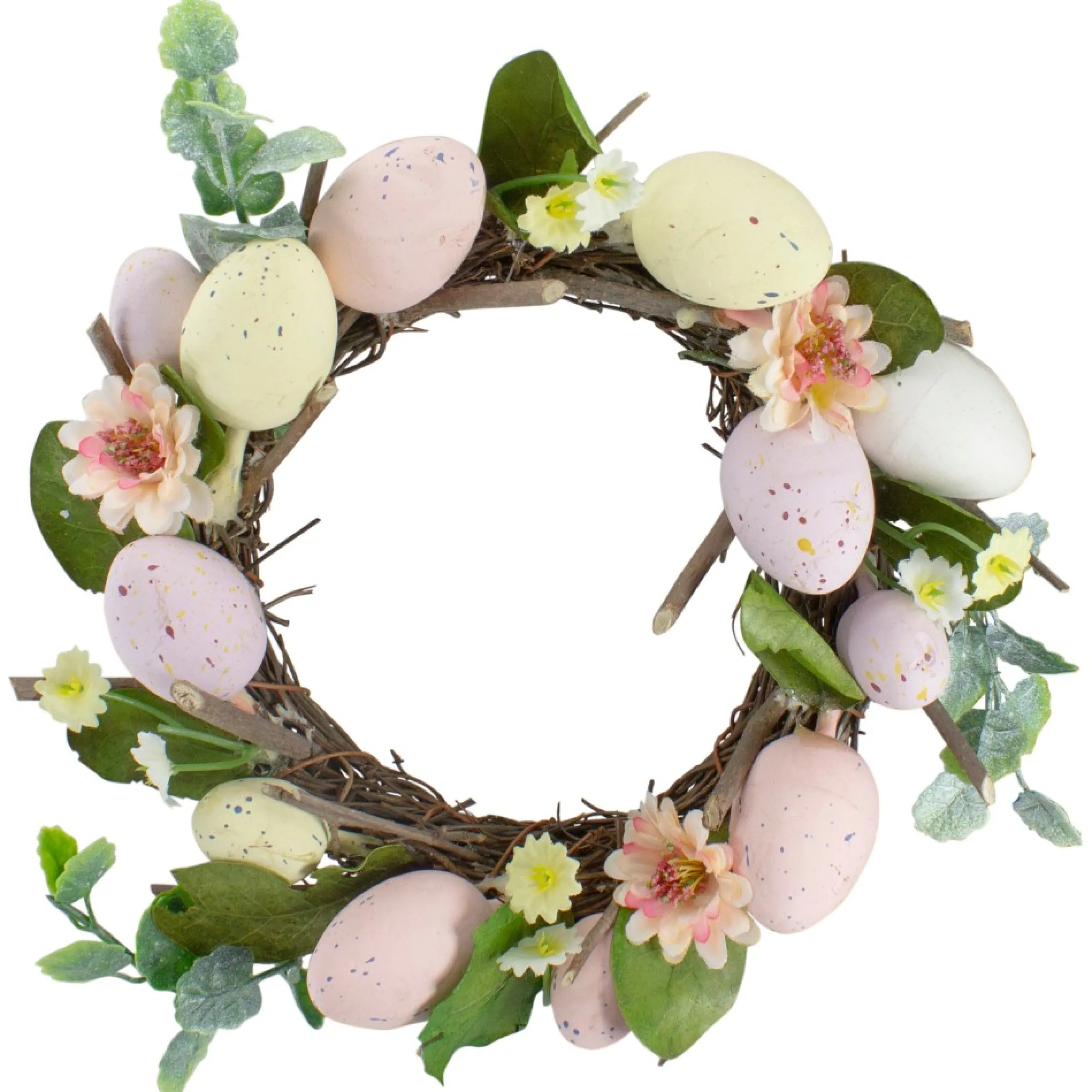 Add Soft Hues To Your Spring Decor With This Mini Easter Egg Wreath. Featuring Realistic Silk Flowers Intertwined With A Natural Grapevine Base, What Better Way To Welcome Guests To Your Home. Can Be Hung Or Displayed On A Tabletop.