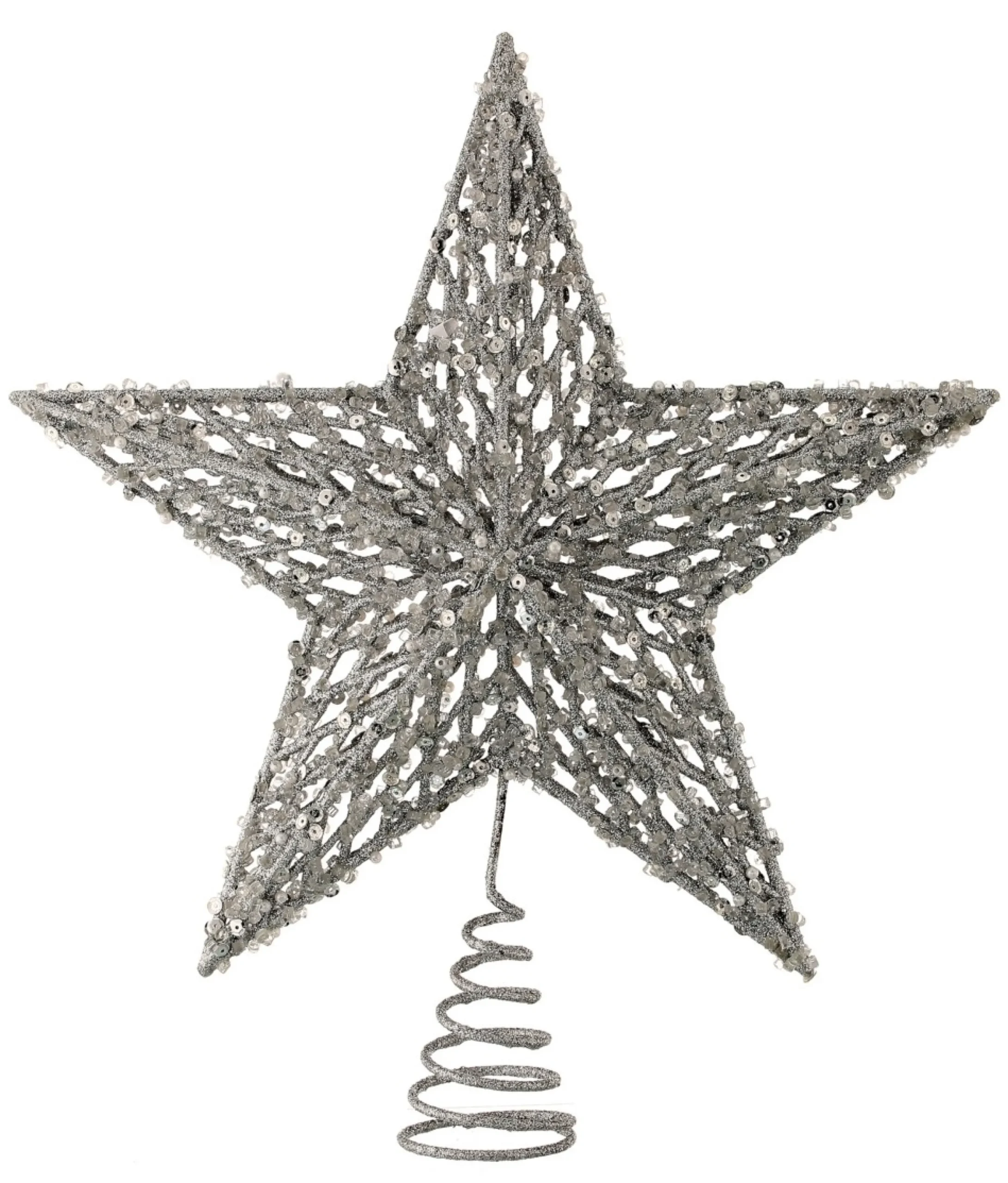 Star Tree Toppers*Contemporary Home Living 13″ Silver Sequin Glitter Star Christmas Tree Topper, Unlit