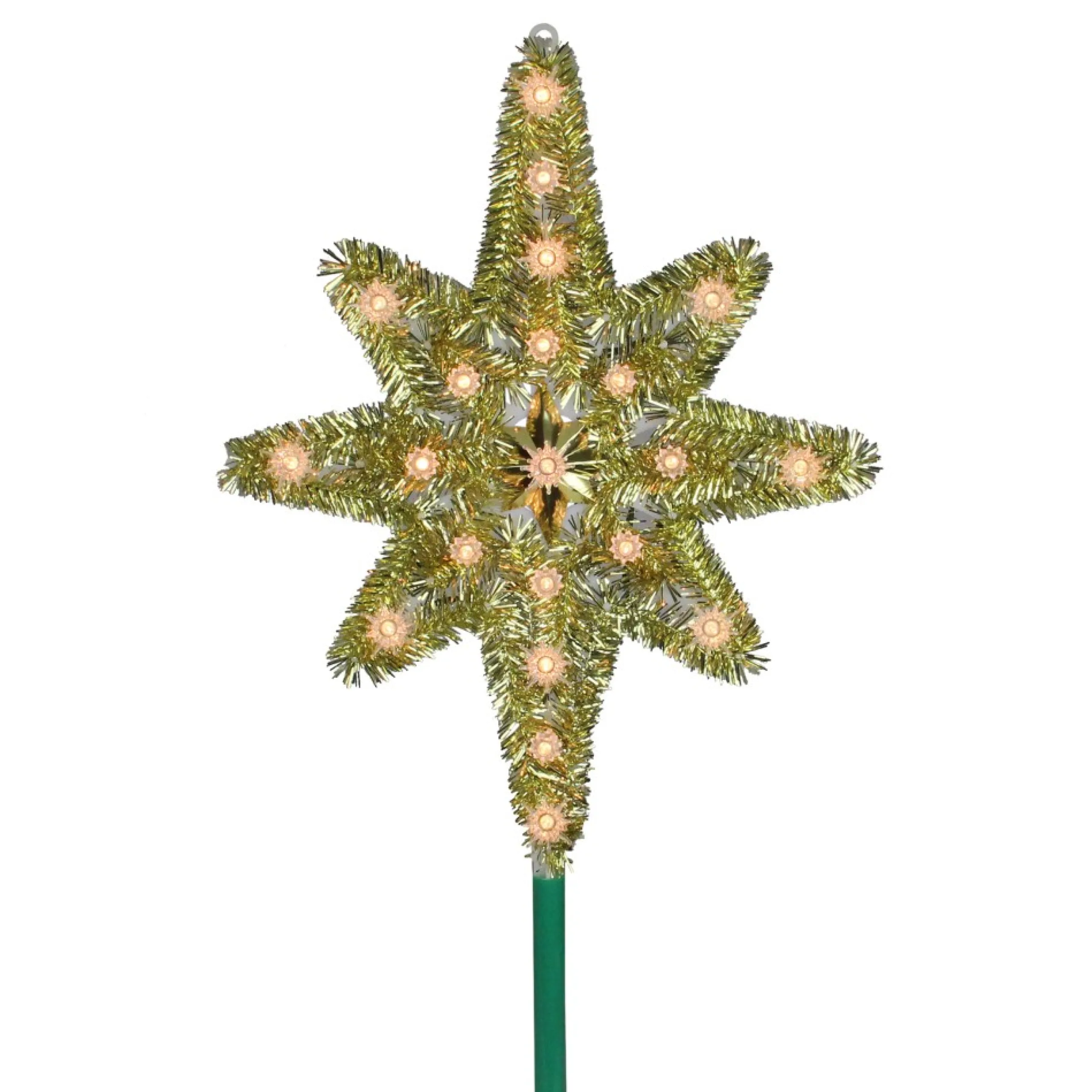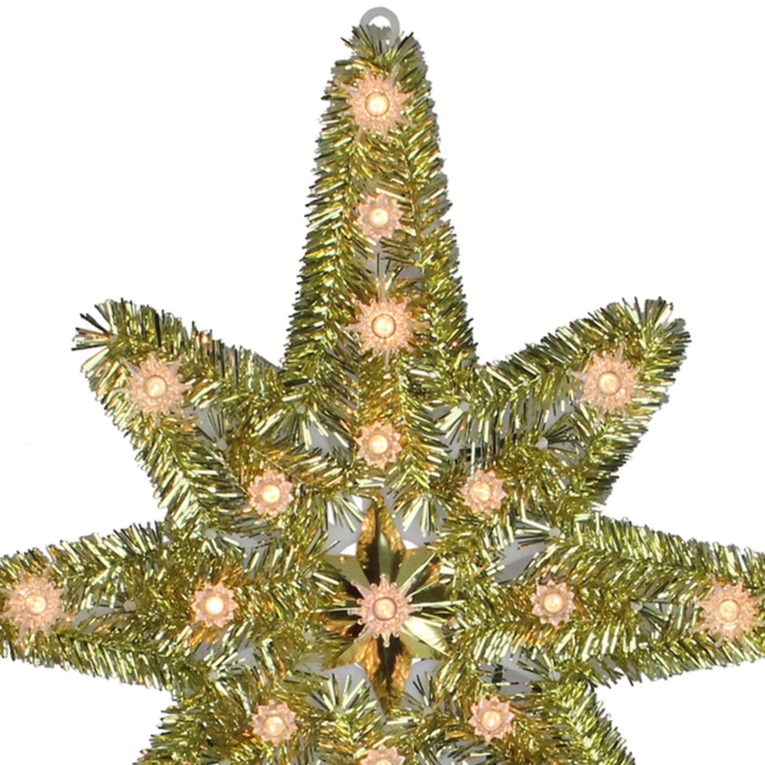 This Classic Star Of Bethlehem Screams Nostalgia With Its Gold Tinsel Border And Sparkly Appearance. Clear Lights Offer A Warm Candle-Like Glow. It Is The Perfect Complement To Your Holiday Tree.