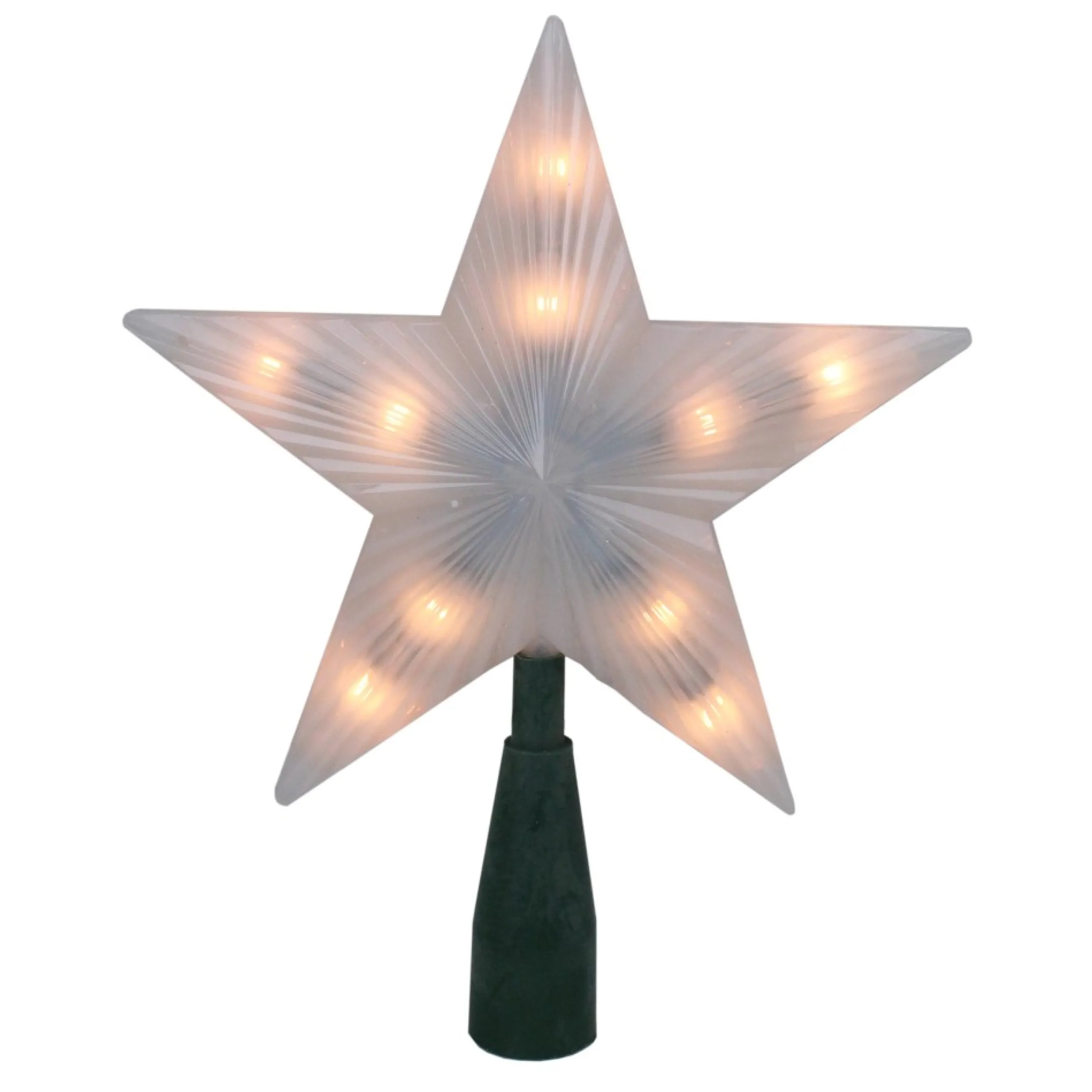 Star Tree Toppers*Northlight 7″ Lighted White Frosted 5-Point Star Christmas Tree Topper – Clear Lights