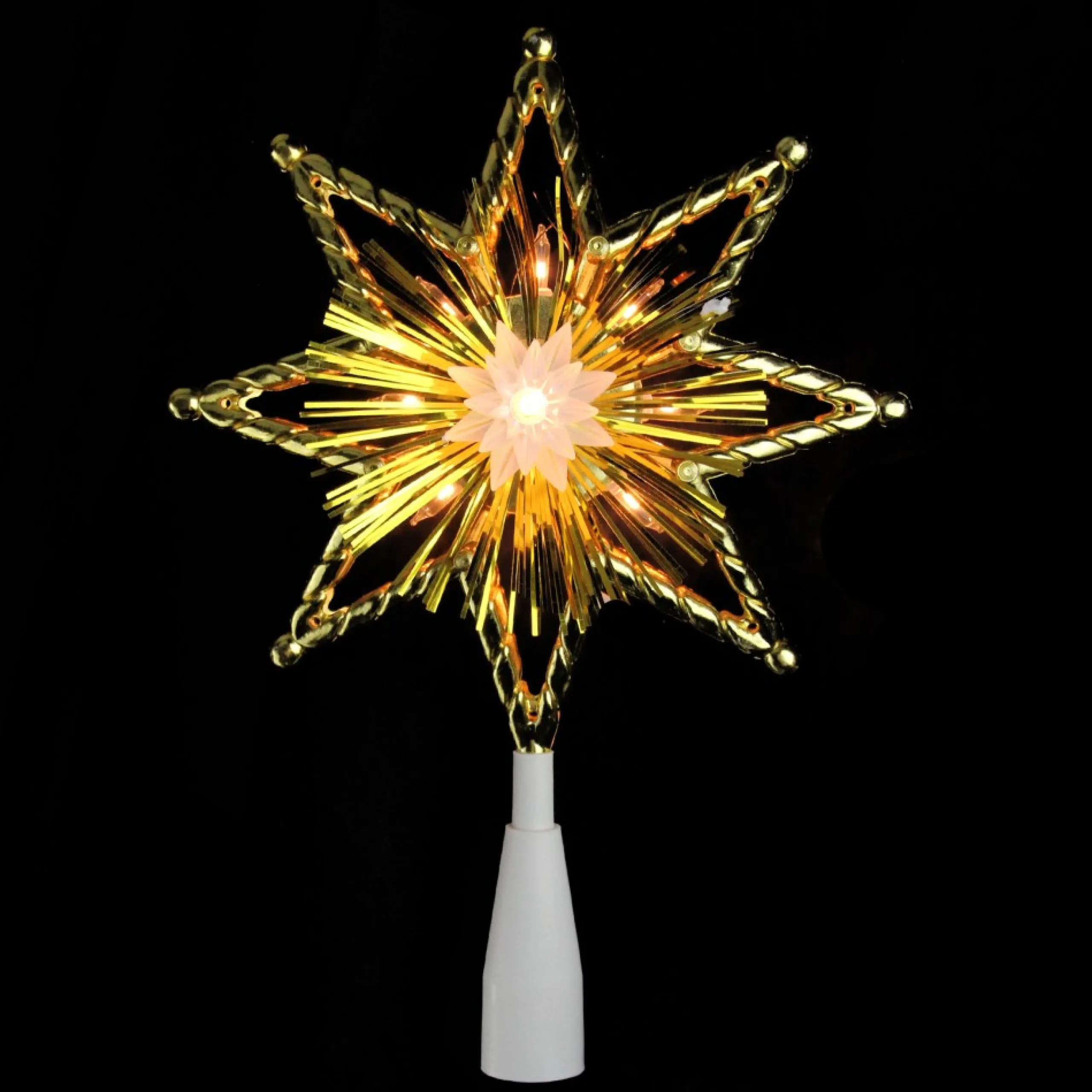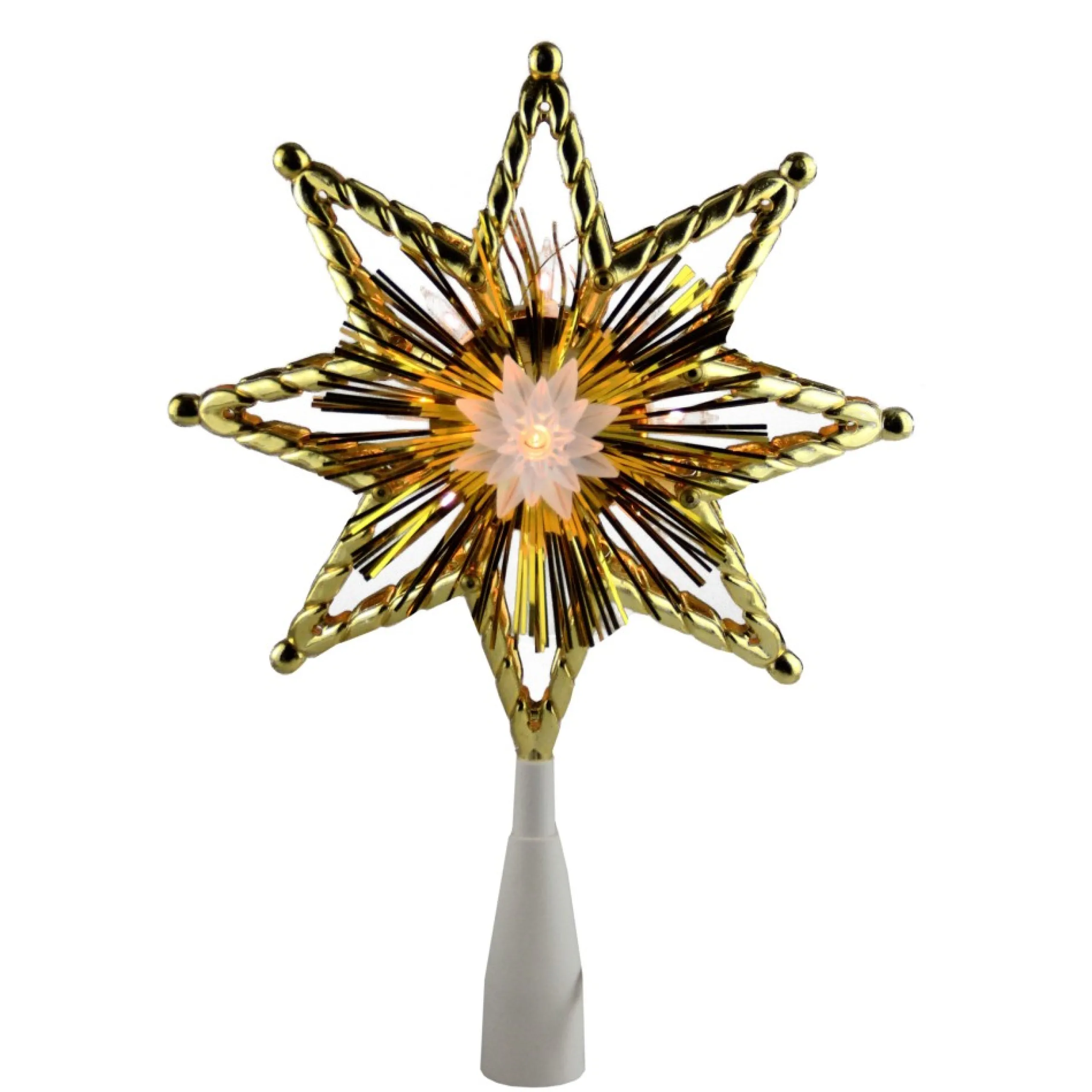 Star Tree Toppers*Northlight 8″ Gold Tinsel 8 Point Star Christmas Tree Topper – Clear Lights