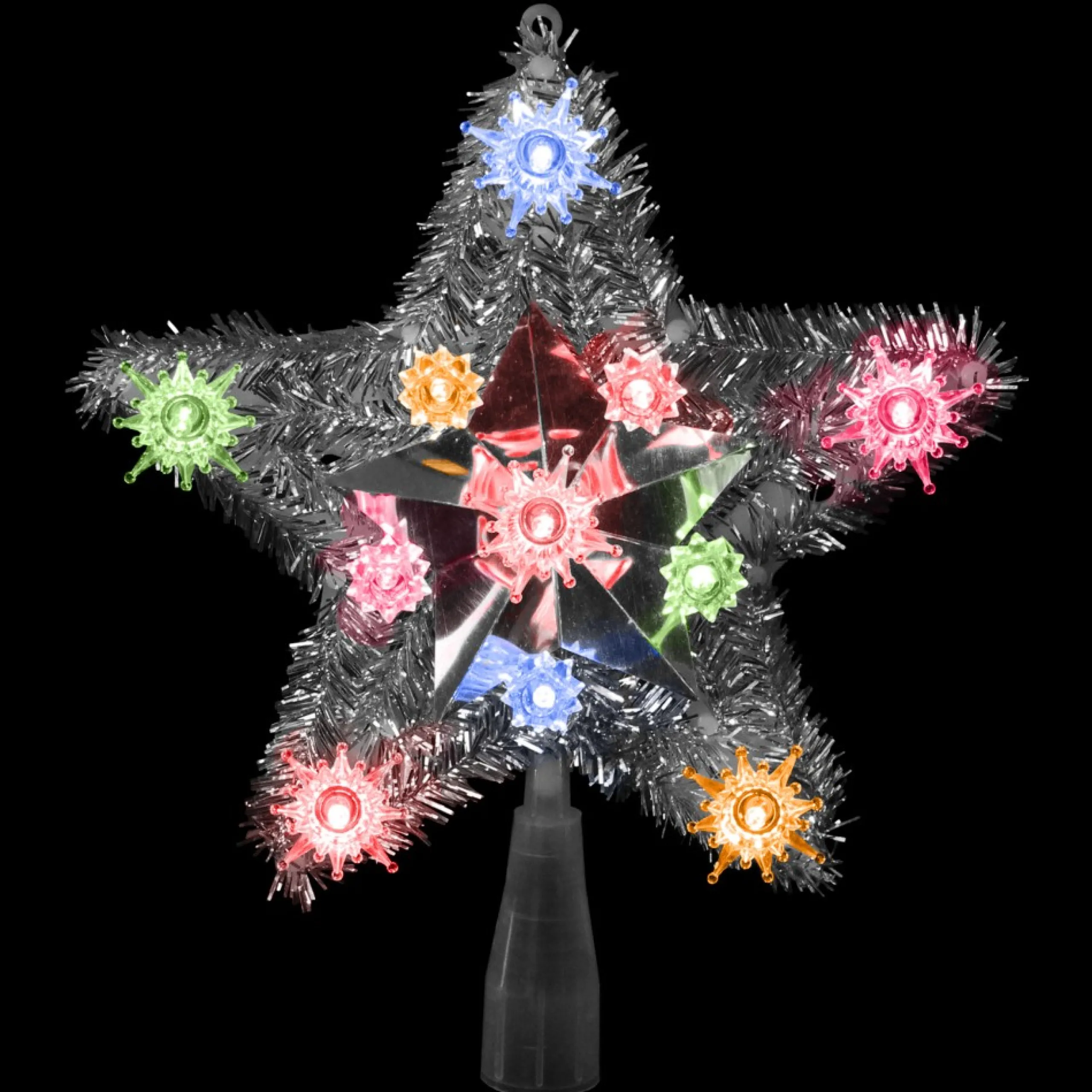 Star Tree Toppers*Northlight 9″ Lighted Silver Star Christmas Tree Topper – Multicolor Lights