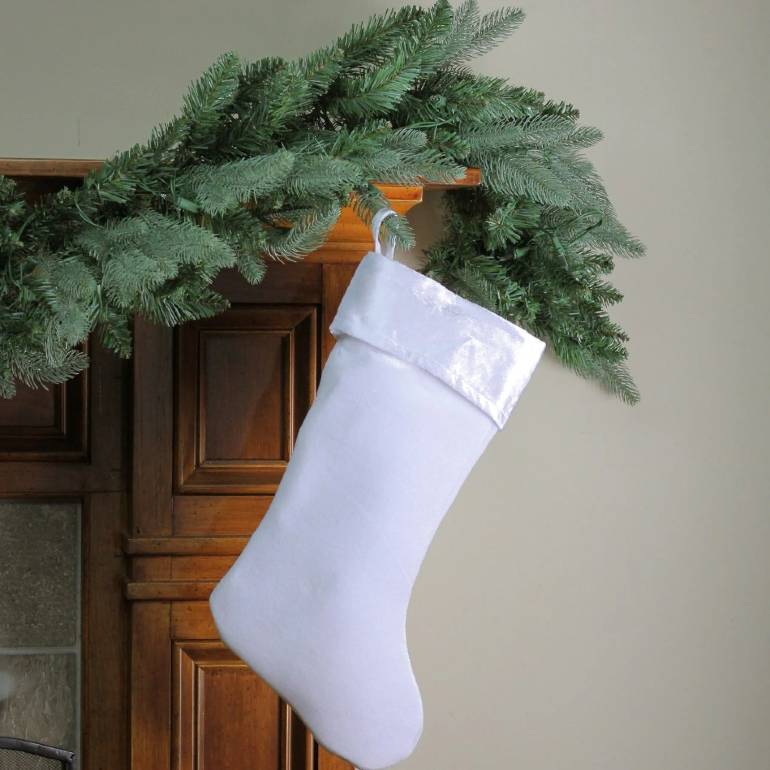 Add A Classic Touch To Your Holiday Decor With This White Velvety Christmas Stocking. You Never Know What Treats St. Nicholas Will Leave. Perfect To Hang From Mantles, Stairwells, Windows, And Bedposts.