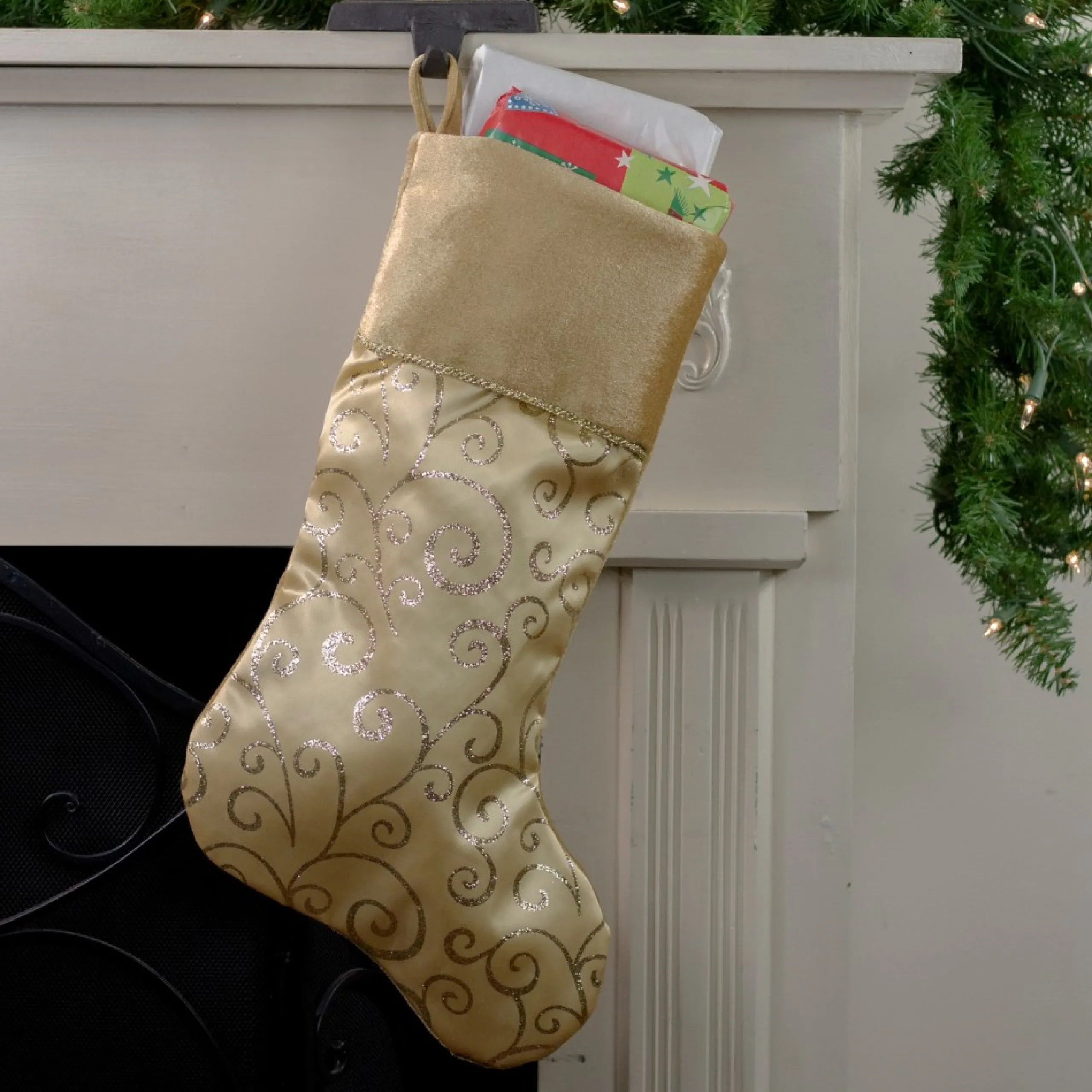 Stockings*Northlight 20.5″ Gold Glittered Swirl Christmas Stocking With Velveteen Cuff