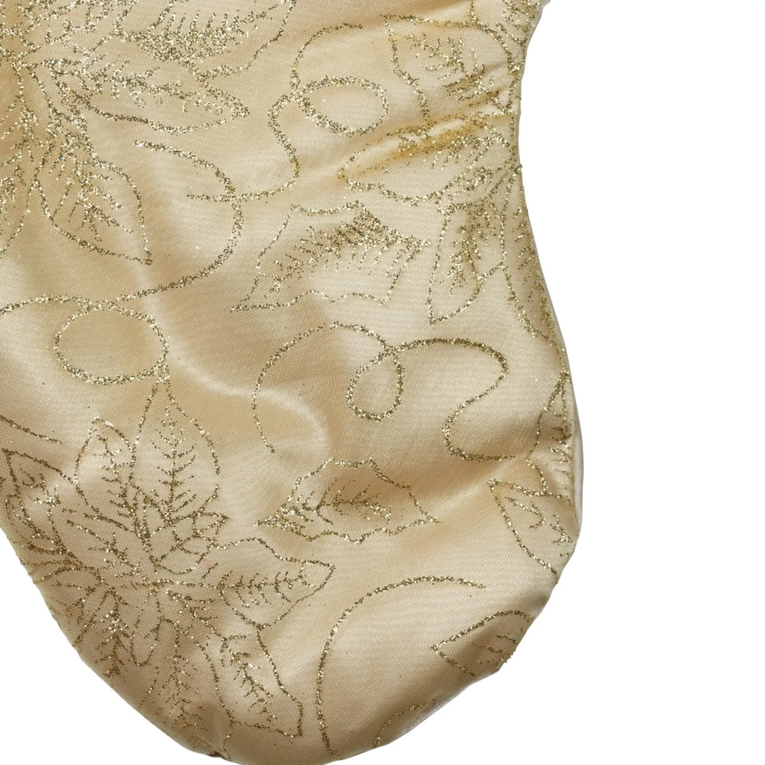Decorate Your House For Christmas With This Stocking. This Embellished Stocking Is Sheer Gold With Gold Glittered Poinsettias And A Gold Velveteen Cuff. You Can Fill This Stocking With Toys And Goodies And Hang It From Your Tree, Or Even On Your Stairway, Doorway, Or Bedpost.