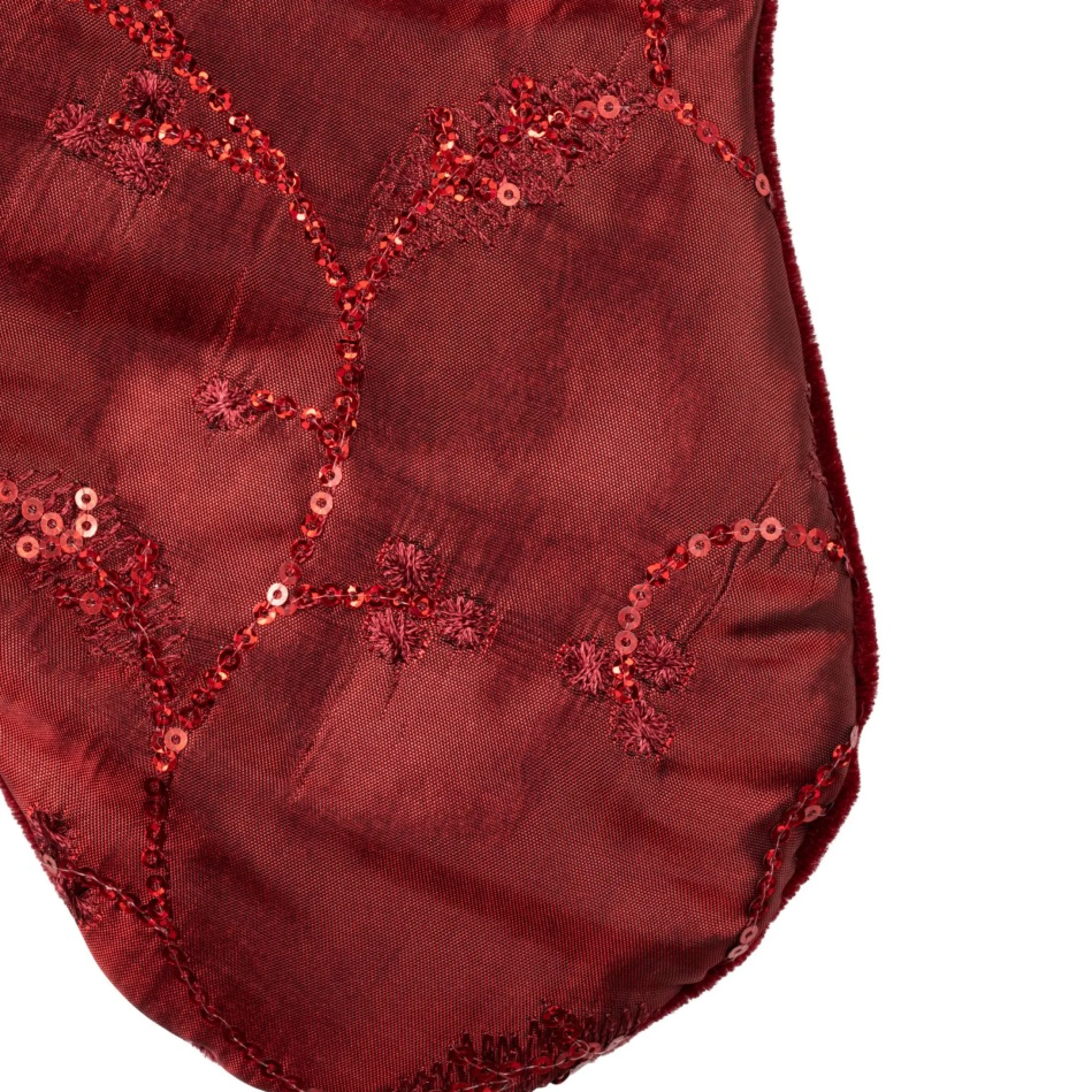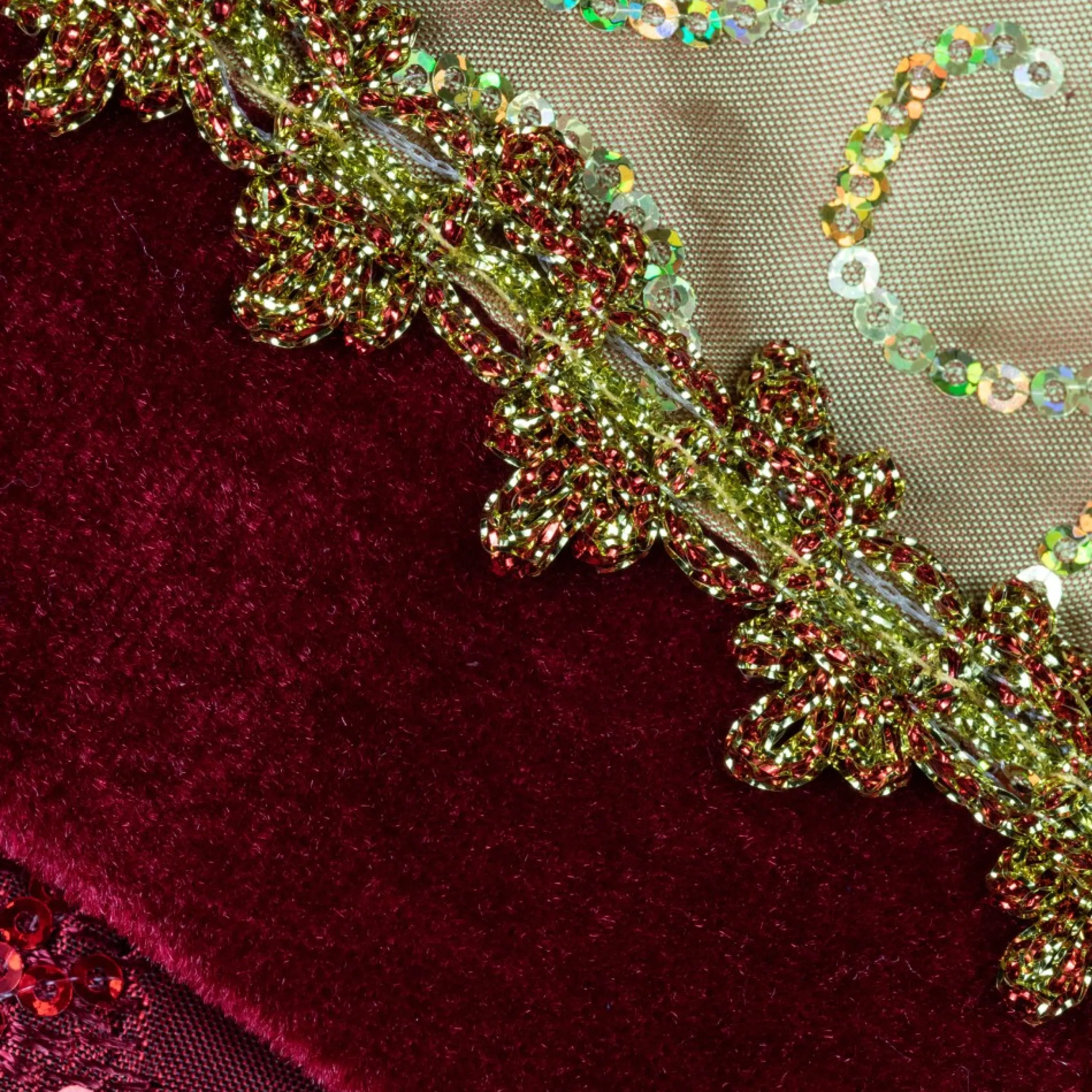 Decorate Your House For Christmas With This Stocking. This Stocking Is Red With A Gold Cuff. There Is A Sequined Swirl And Leaf Design On Both The Cuff And Stocking. You Can Fill This Stocking With Toys And Goodies And Hang It From Your Tree, Or Even On Your Stairway, Doorway, Or Bedpost.