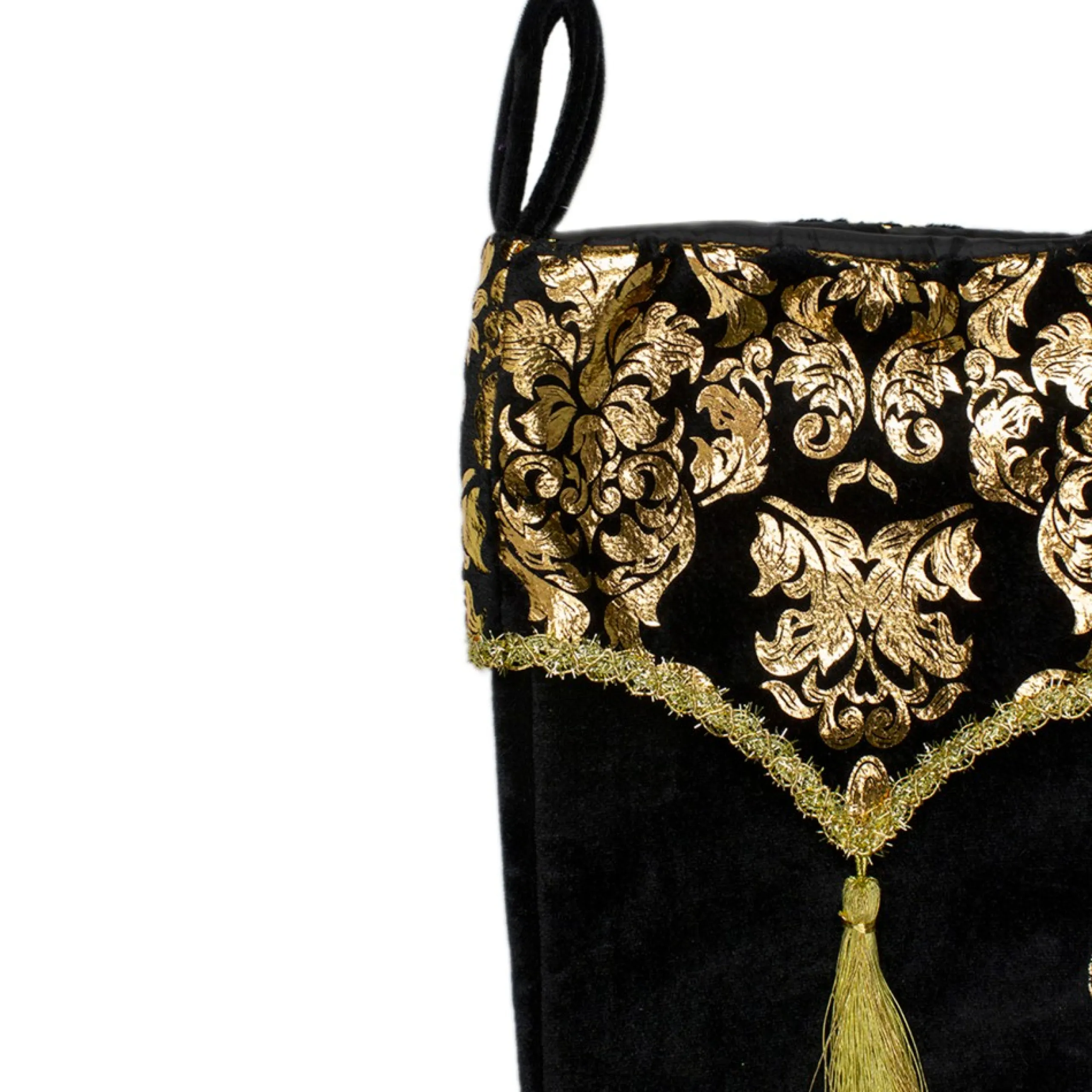Stockings*Northlight 21.5″ Black And Gold Damask Velveteen Christmas Stocking With Tassel