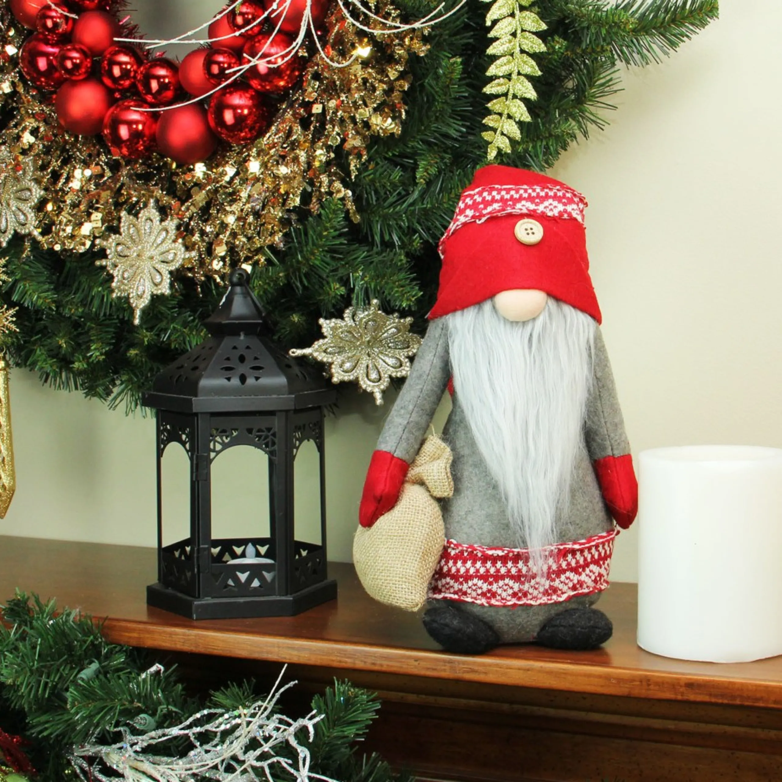Table Top Pieces*Northlight 25″ Red And Gray Nordic Gnome With Burlap Sack Christmas Figure