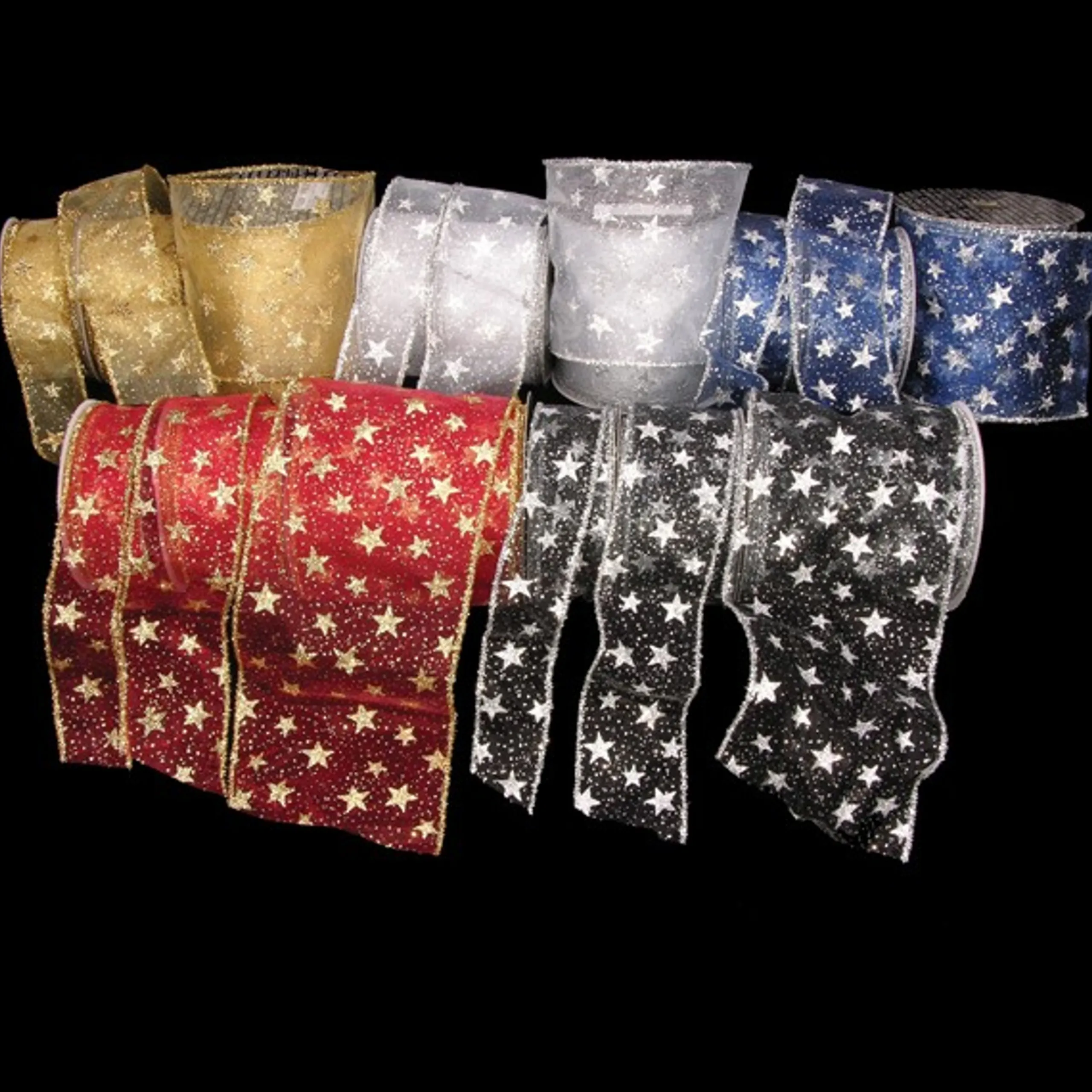 Dazzling Navy Ribbon Features Beautiful Silver Stars On A Fuzzy Wire Sewn Wire Edged Ribbon Allows You To Bend And Shape…