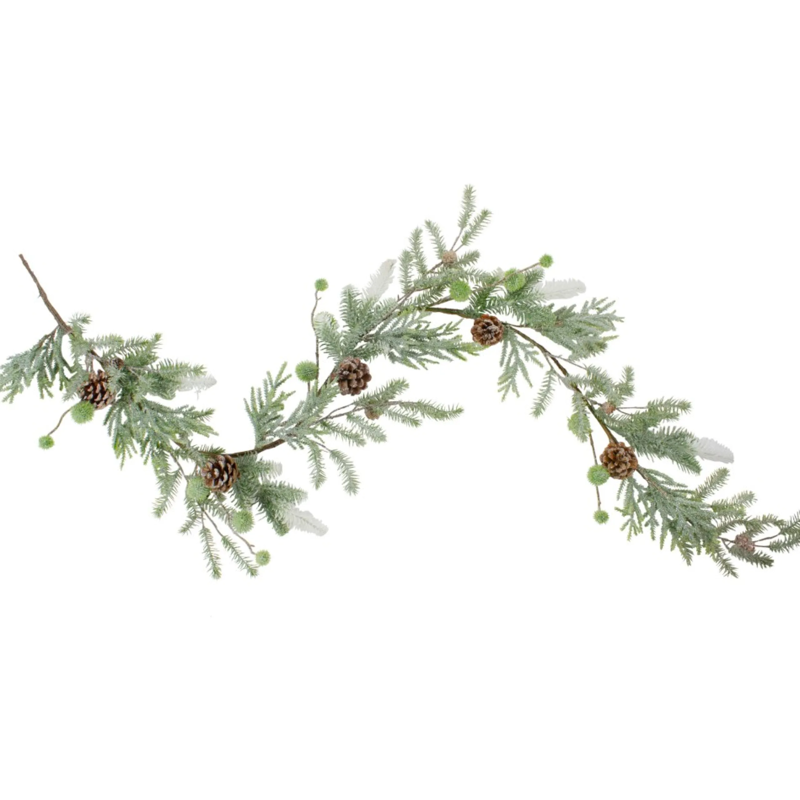 Add A Touch Of Nature To Your Christmas Decor With This Frosted Pine Cone Garland. It Is Designed With Silver Glittered Pine Leaves, Burrs, And Pine Cones. It Will Provide Sparkle Wherever It Is Placed. You Will Receive Many Compliments From Your Neighbor And Friends.